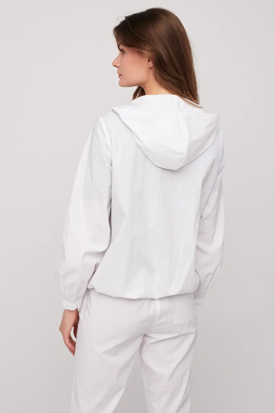 Weiße kurze Jacke mit Kapuze