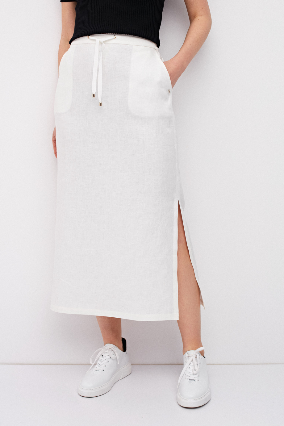 Langer weißer Leinenrock