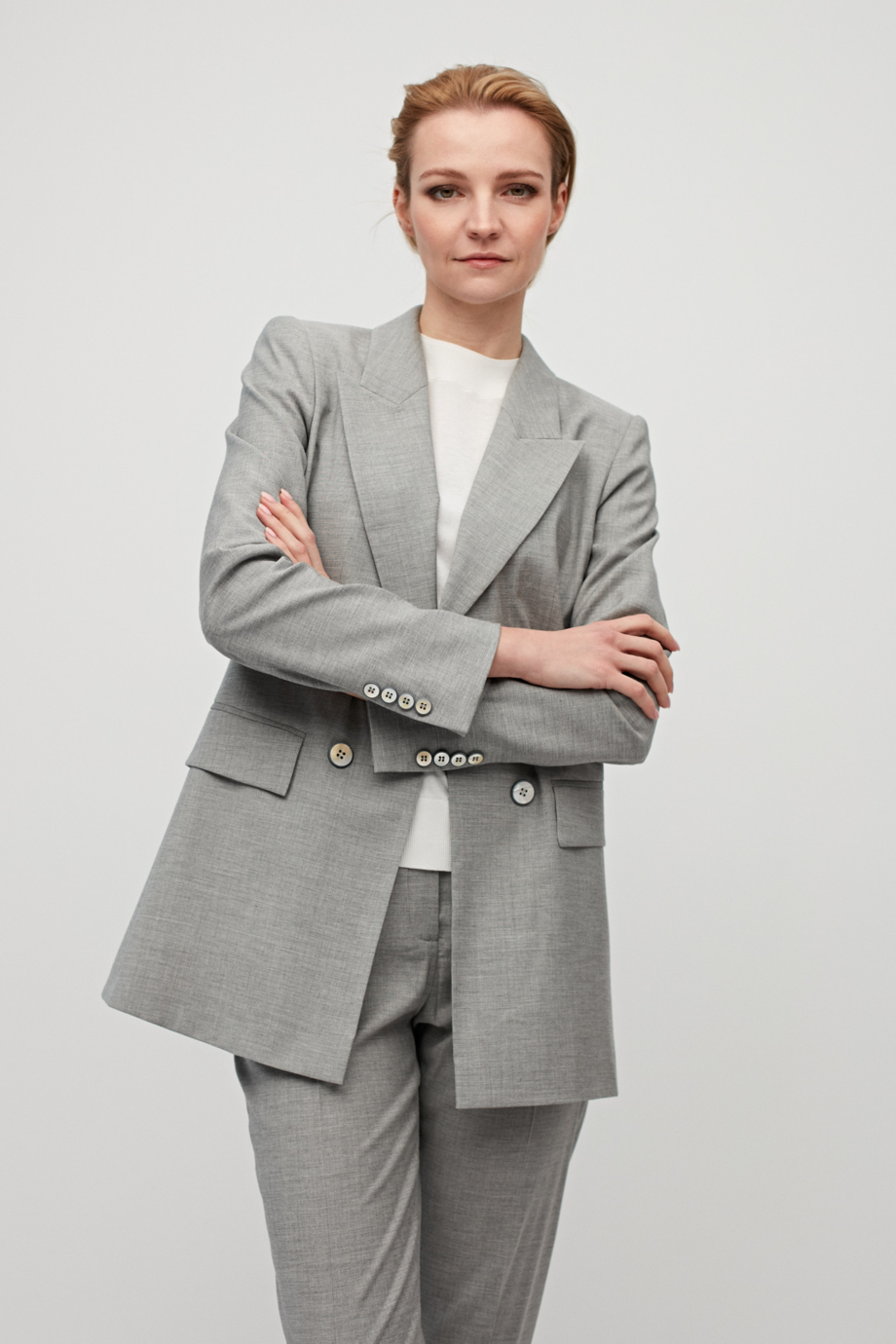 Grauer Blazer mit Wolle für Anzug, zweireihig