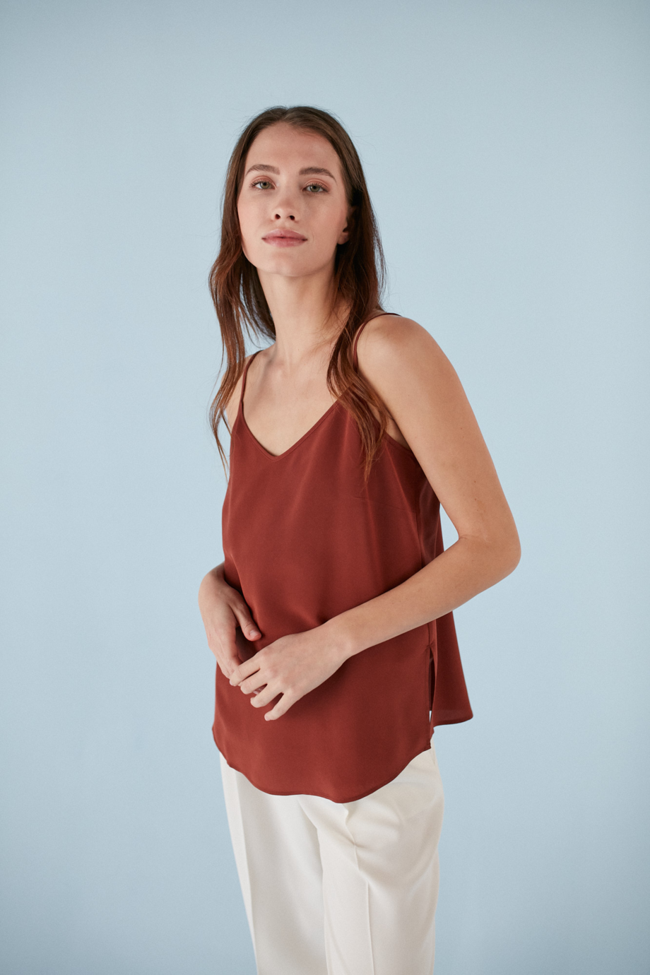 Das Model auf dem Foto ist 177 cm groß und trägt Größe 36.