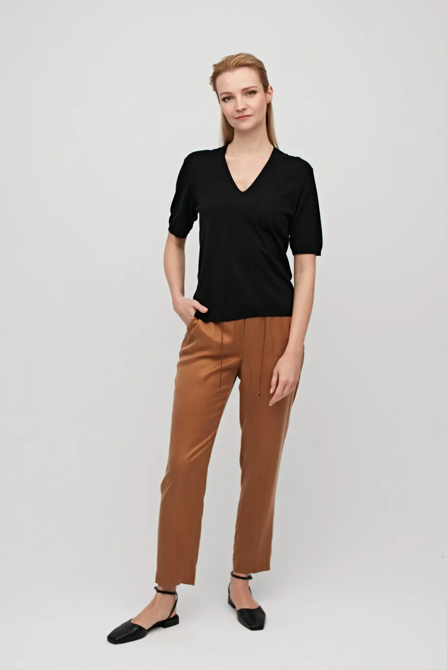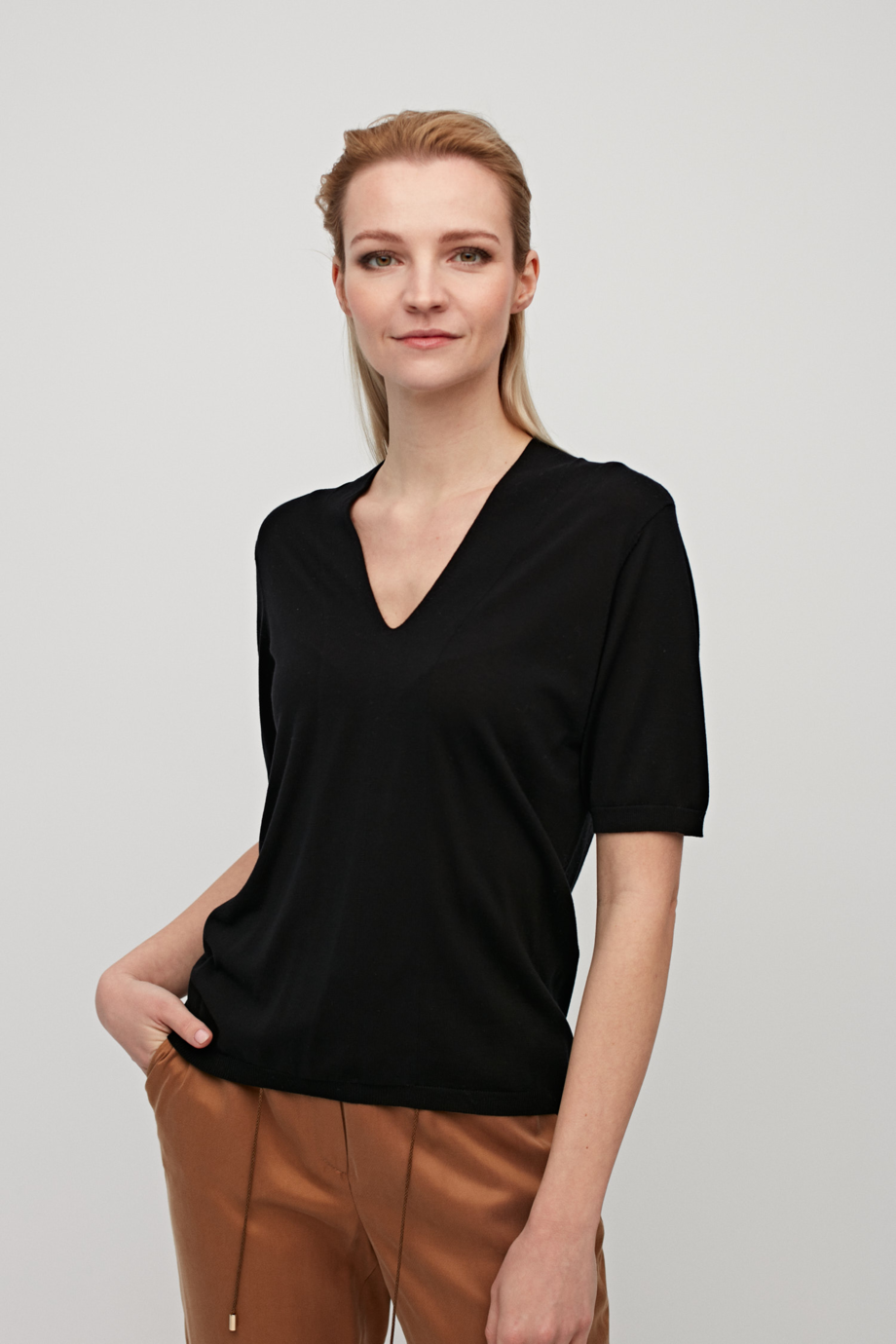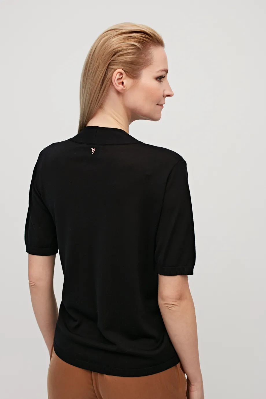 Schwarzes Oberteil mit Wolle V-Ausschnitt