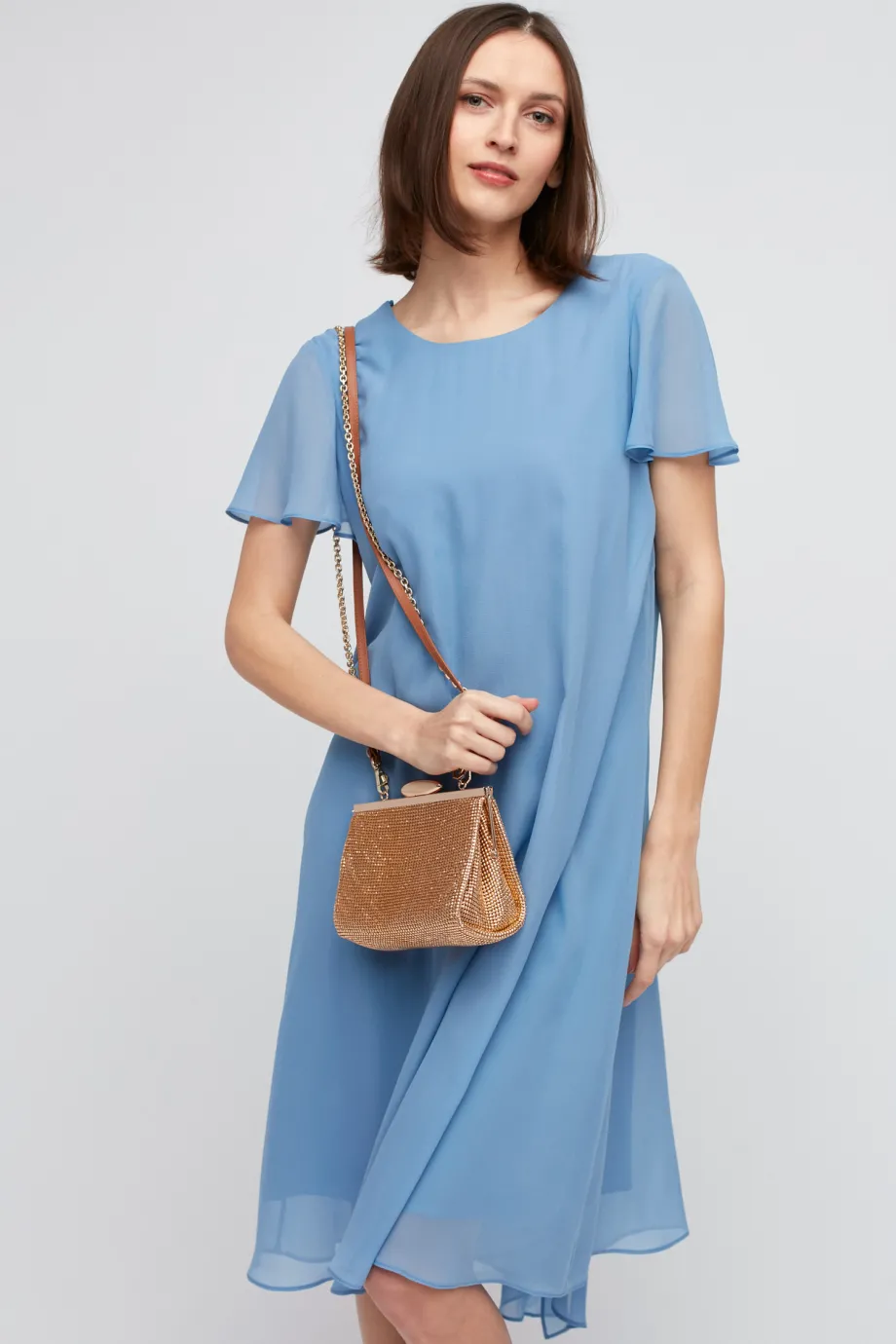 Die Handtasche verfügt über 2 abnehmbare Träger - eine Kette in der gleichen goldenen Farbe und einen dünnen, klassischen Lederriemen