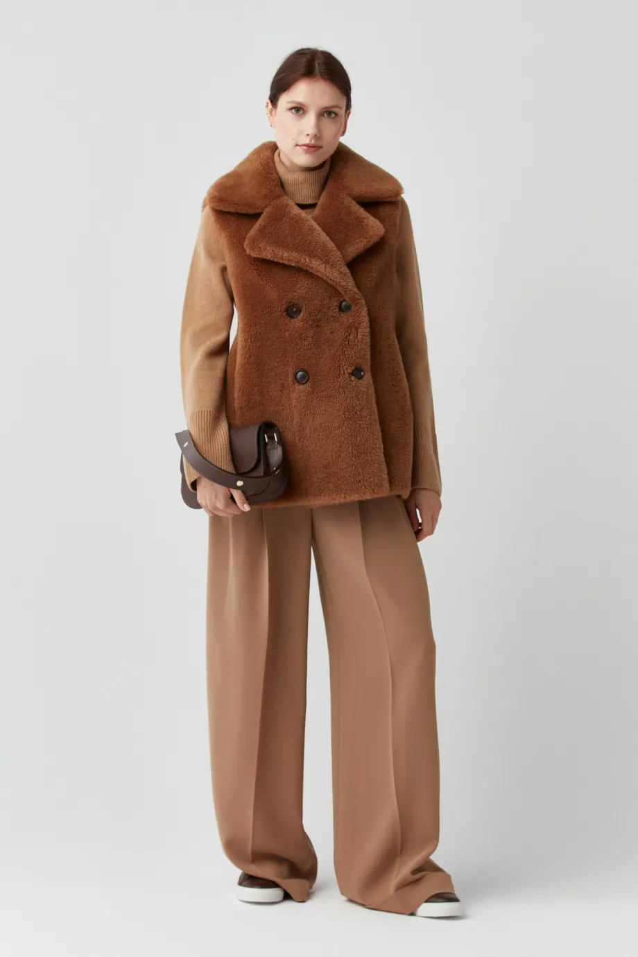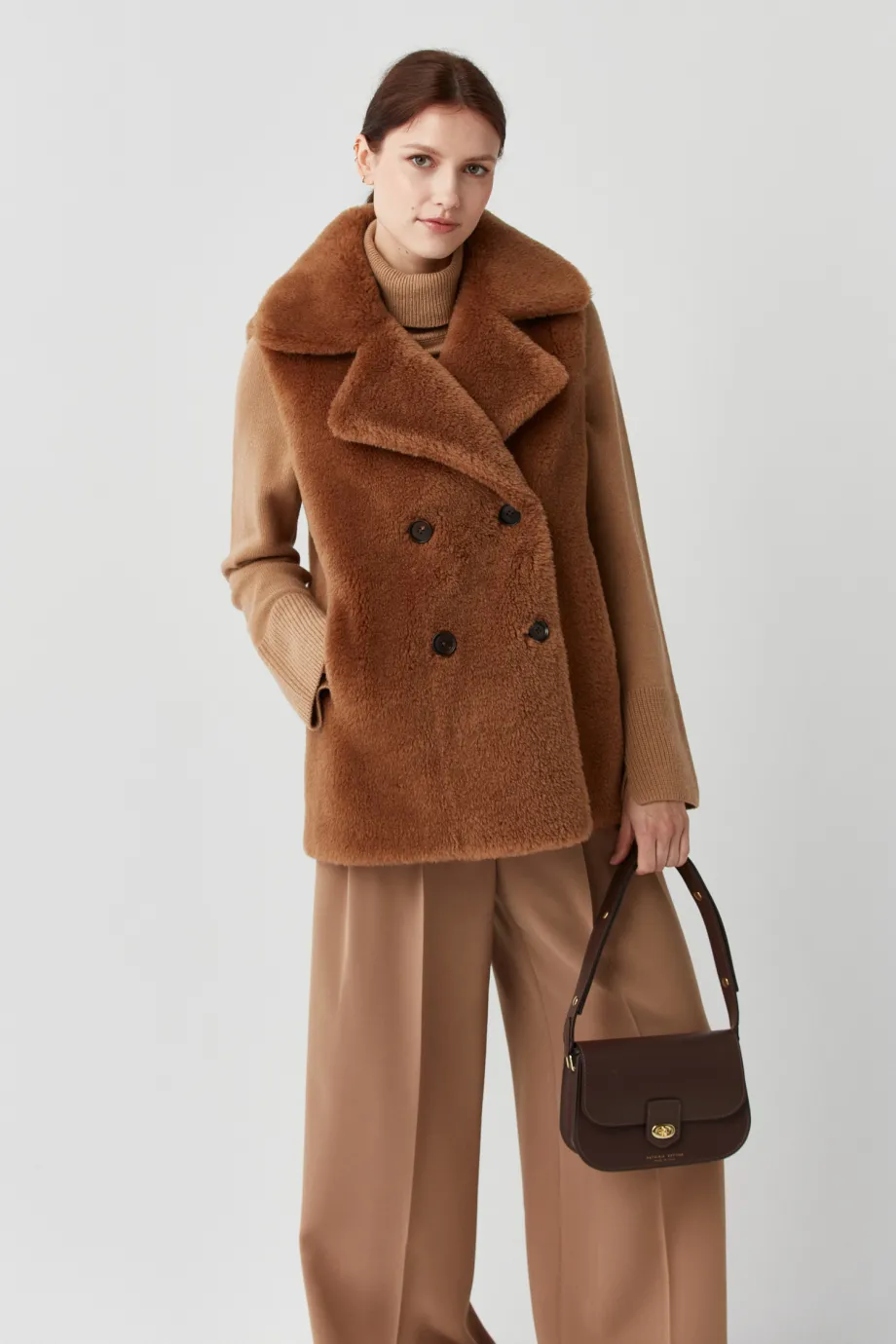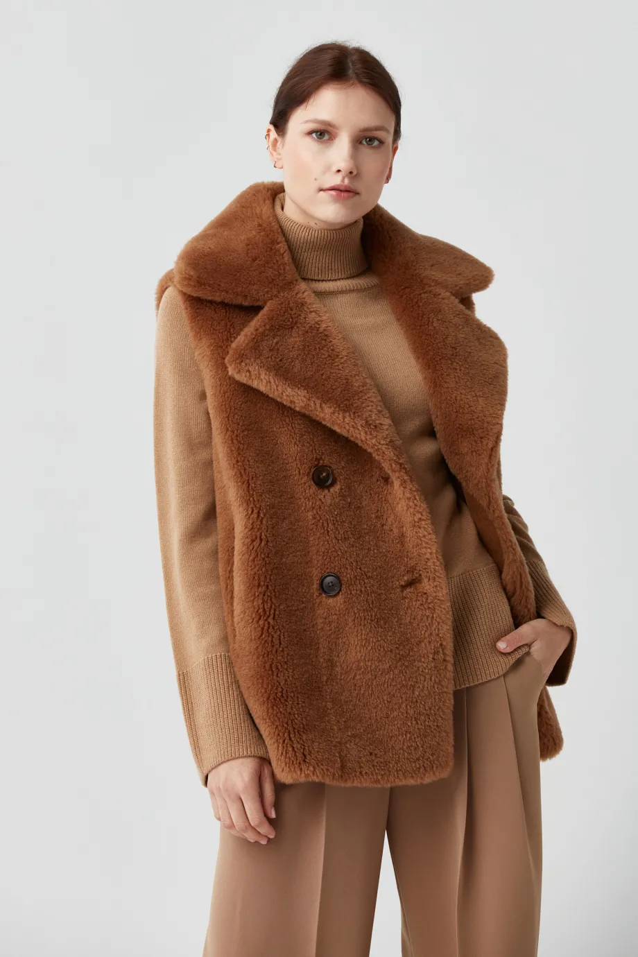 Zweireihige Teddy-Bär-Weste aus Wolle