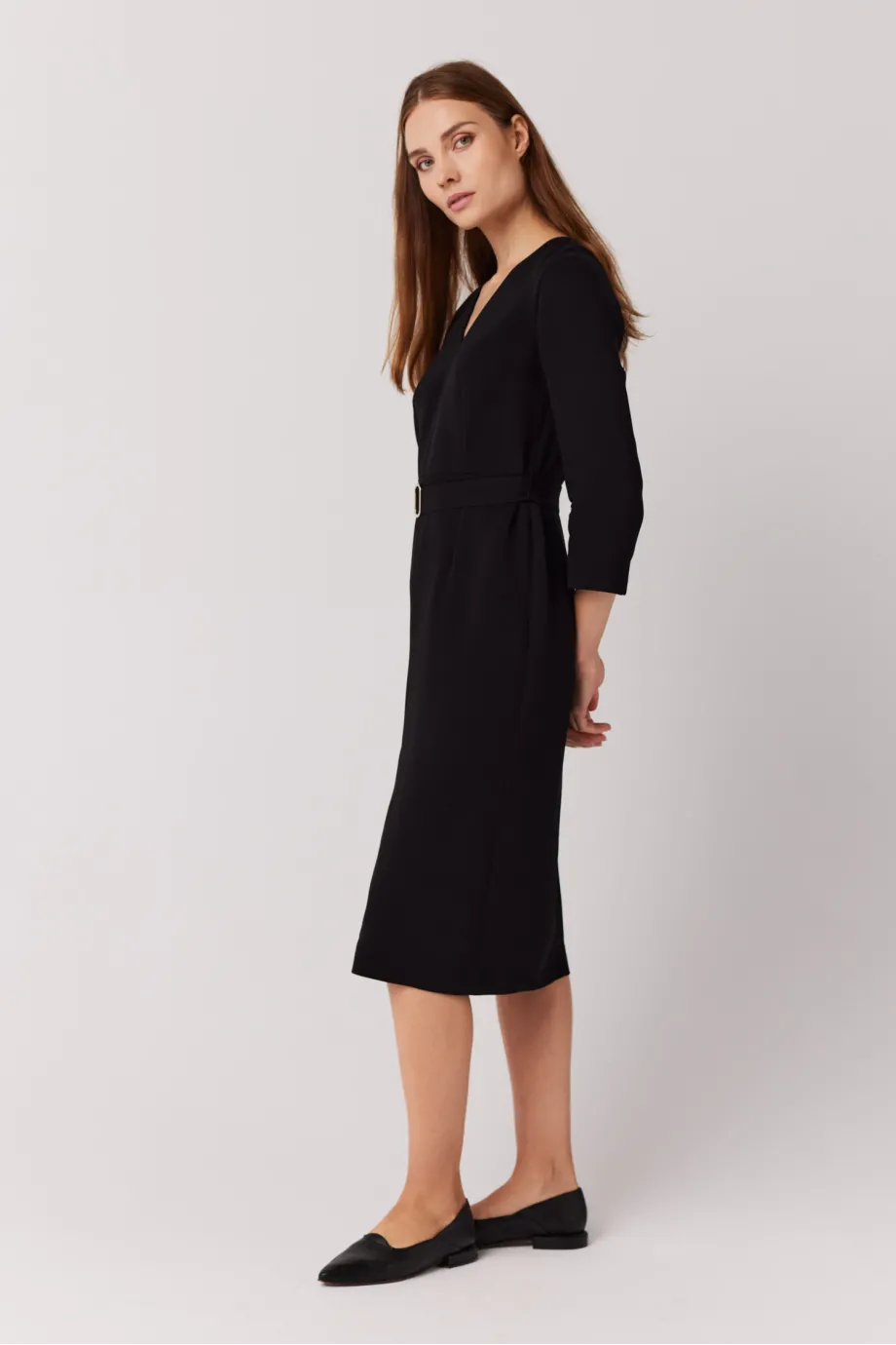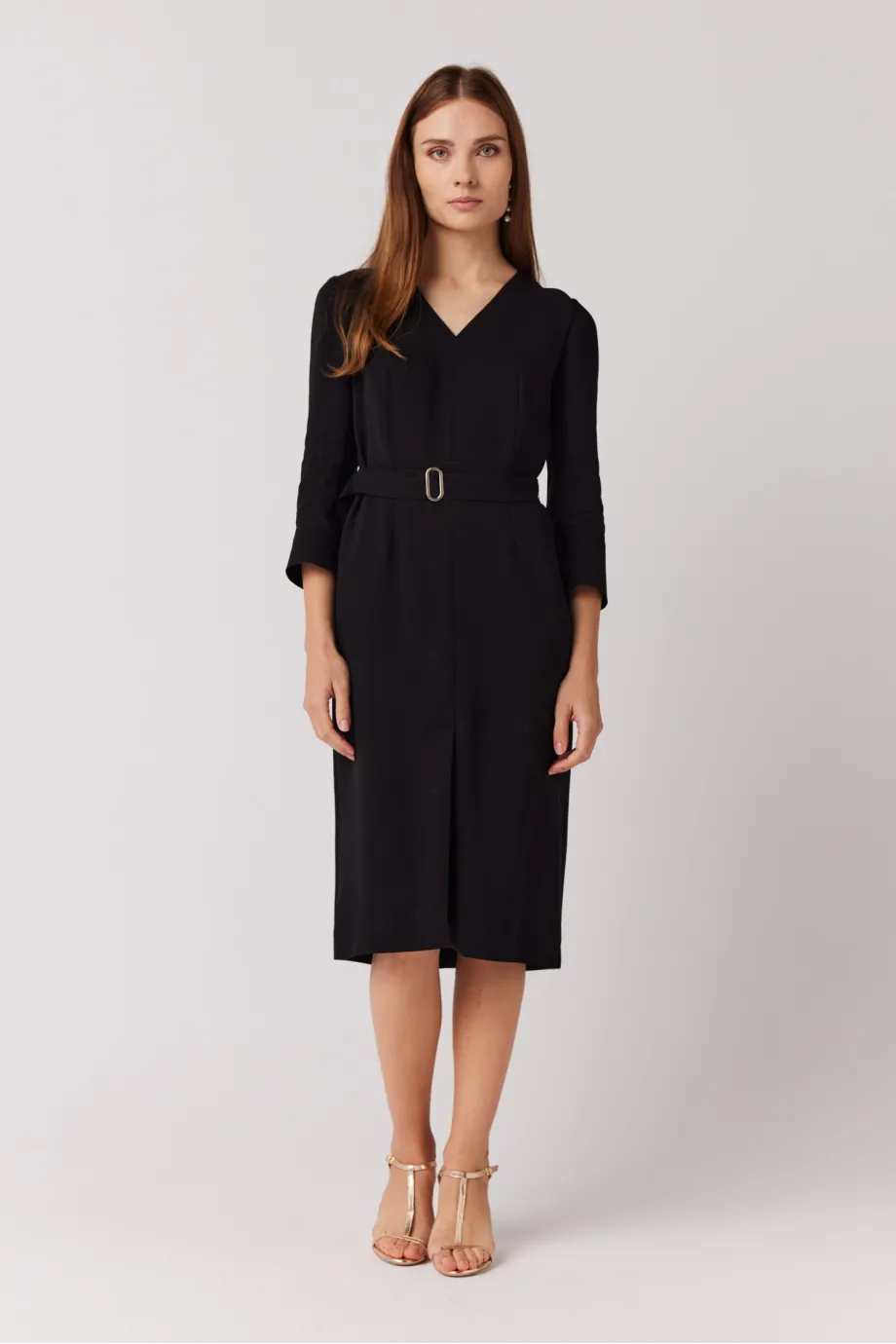Schwarzes Kleid mit Gürtel