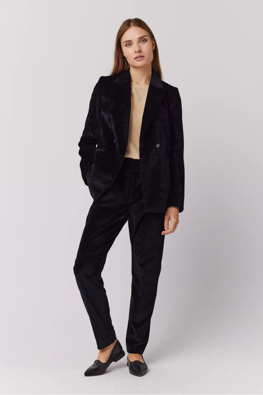 Zum Ergänzen des Outfits, Hosen aus demselben Stoff