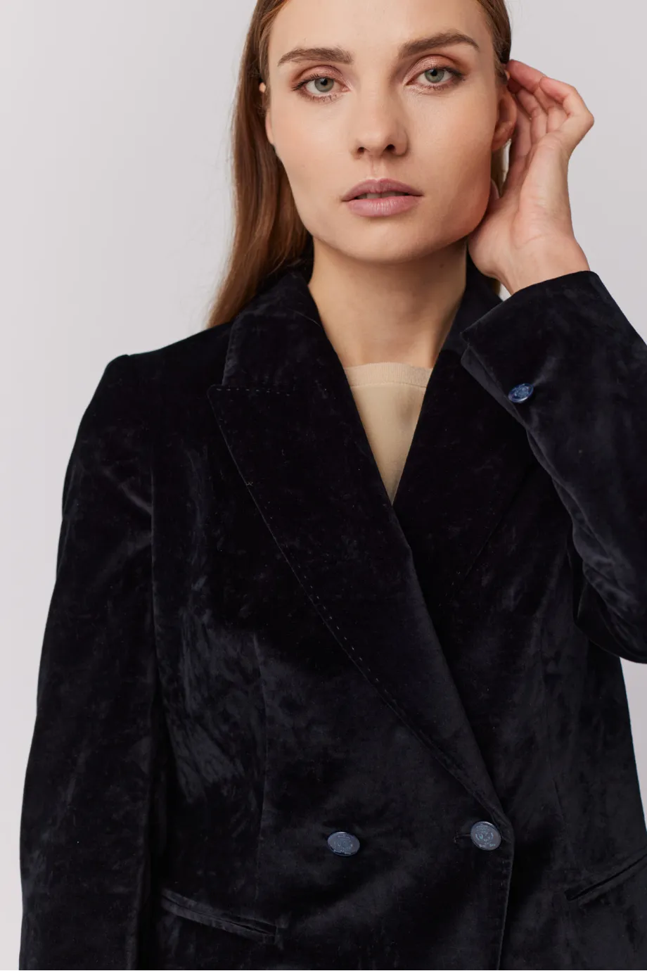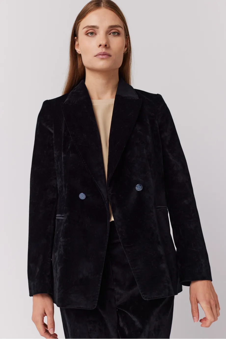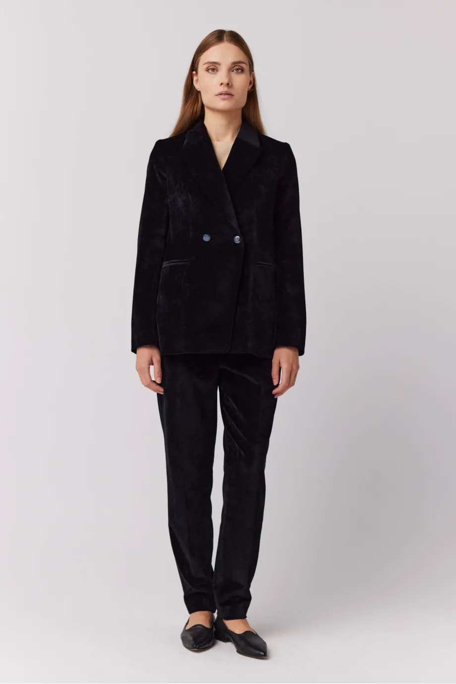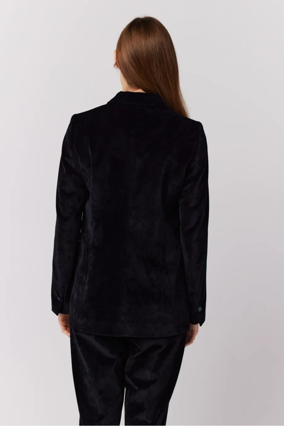 Schwarzer samtener Zweireiher-Blazer