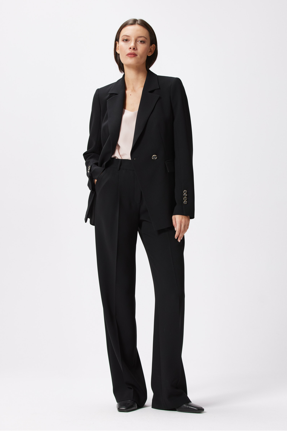 Schwarze, weite Anzughose