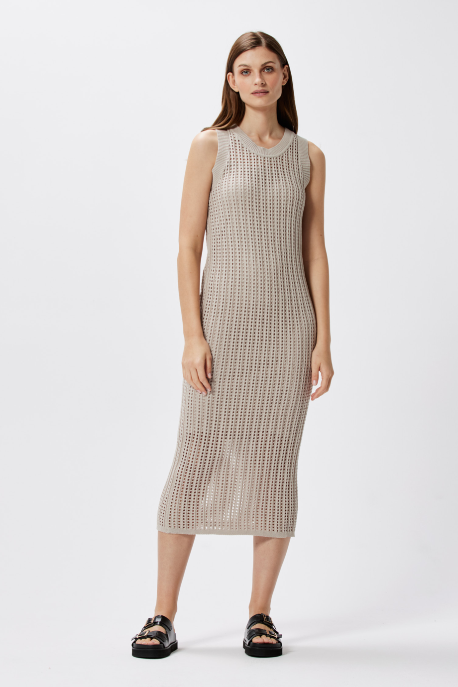 Suchst du das perfekte Sommerkleid, das Eleganz, Komfort und höchste Qualität vereint? Setze auf das beigefarbene Baumwollkleid aus unserer Premium-Kollektion! Aus weichem Strick gefertigt, passt es sich ideal deiner Figur an, bietet Komfort und betont die Vorzüge der weiblichen Silhouette. Die Lochmuster-Details verleihen ihm Charme und einen einzigartigen Charakter, während der figurbetonte Schnitt die Silhouette sanft hervorhebt. Probier es an!