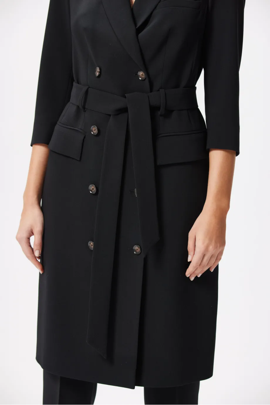 Das schwarze Zweireiher-Kleid Elise stammt aus der Frühling-Sommer-Kollektion. Es wurde aus atmungsaktivem Triacetat gefertigt, welches als der Bentley unter den Viskosen bezeichnet wird. Dieses schwarze Kleid mit Gürtel sieht auch nach einem ganzen Tag des Tragens makellos aus und ist ideal auf Reisen. Mit dem Business-Kleid von Patrizia Aryton erhalten deine Büro- und Besuchsoutfits eine feminine Note und einen modischen Look.