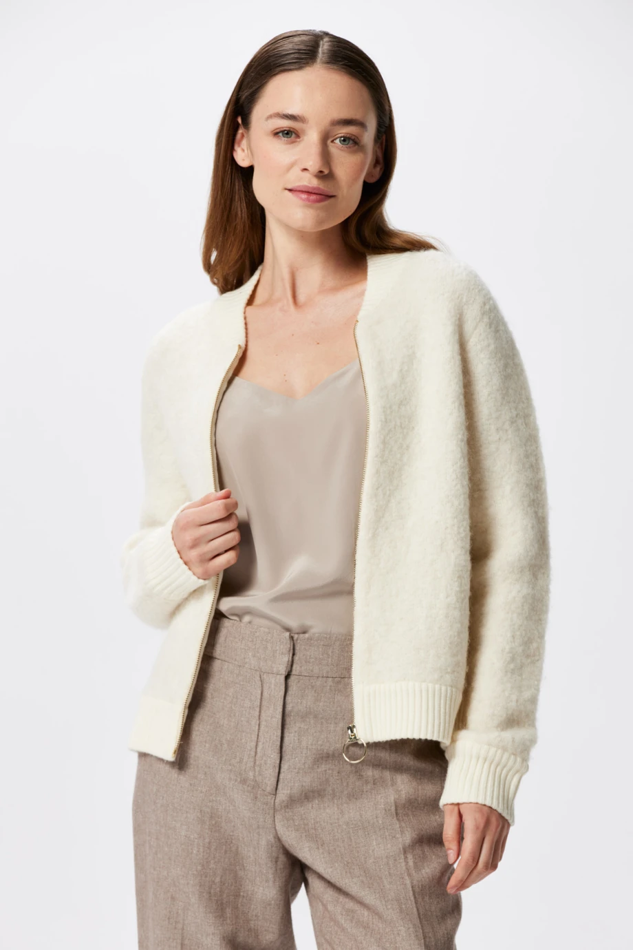 Bomberjacken-Schnitt, Stehkragen und Bündchen aus Merinowolle