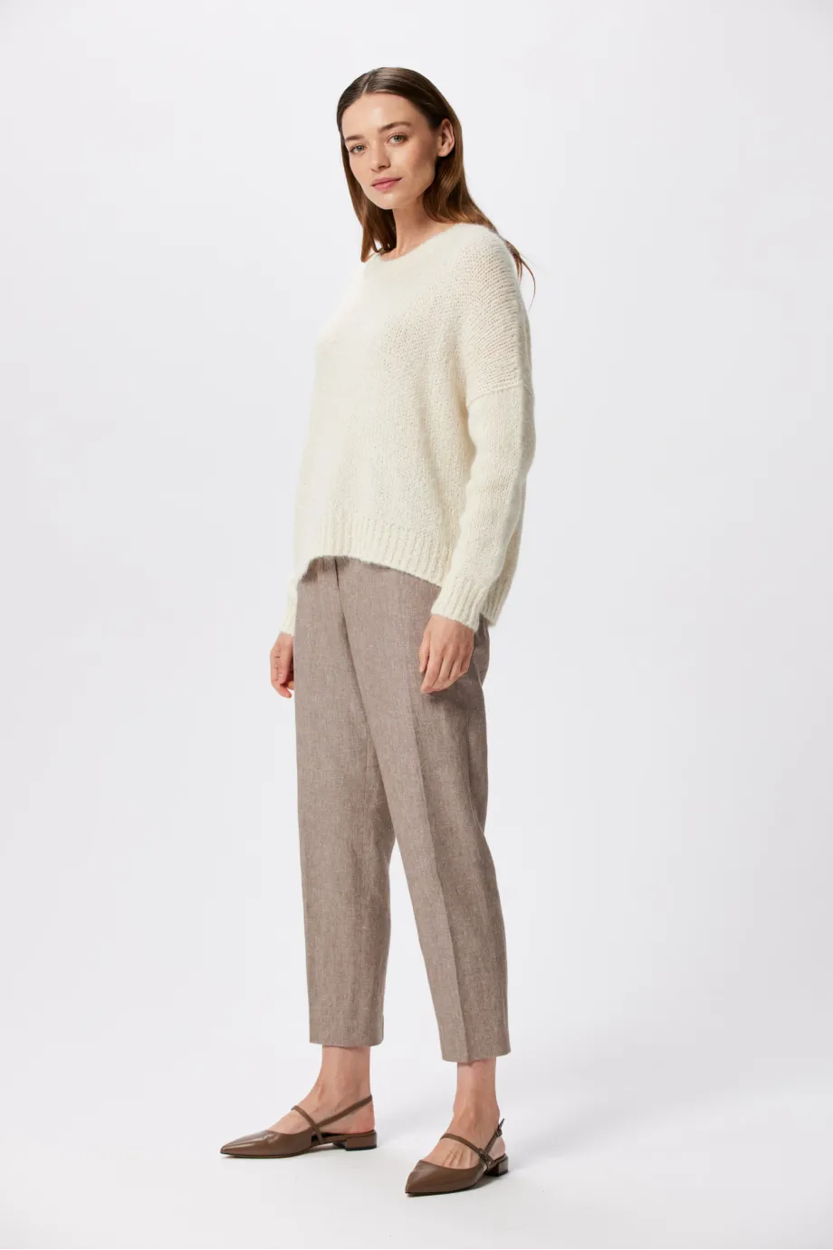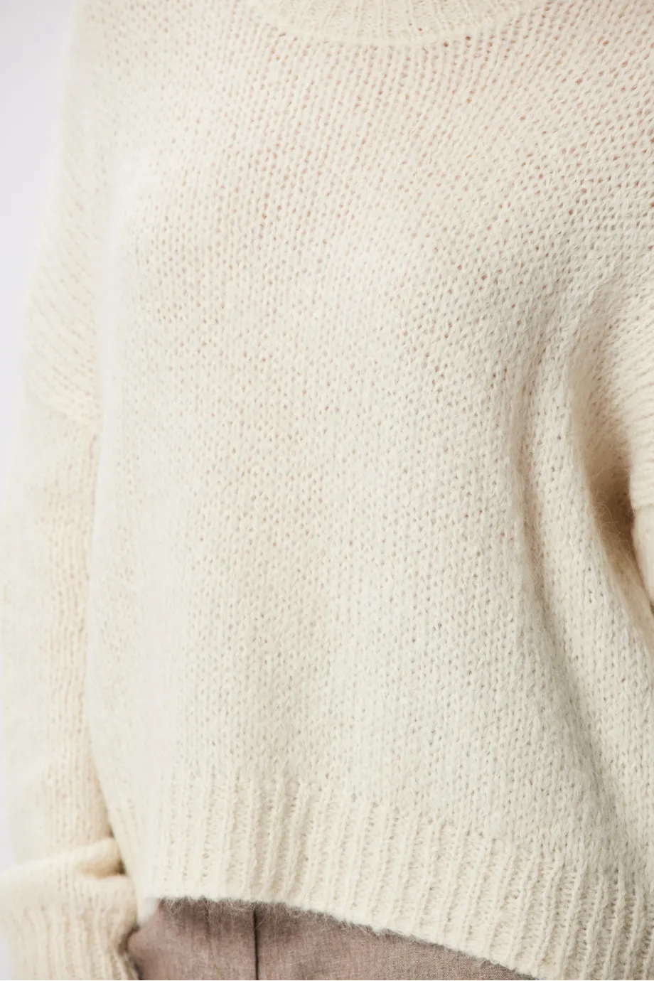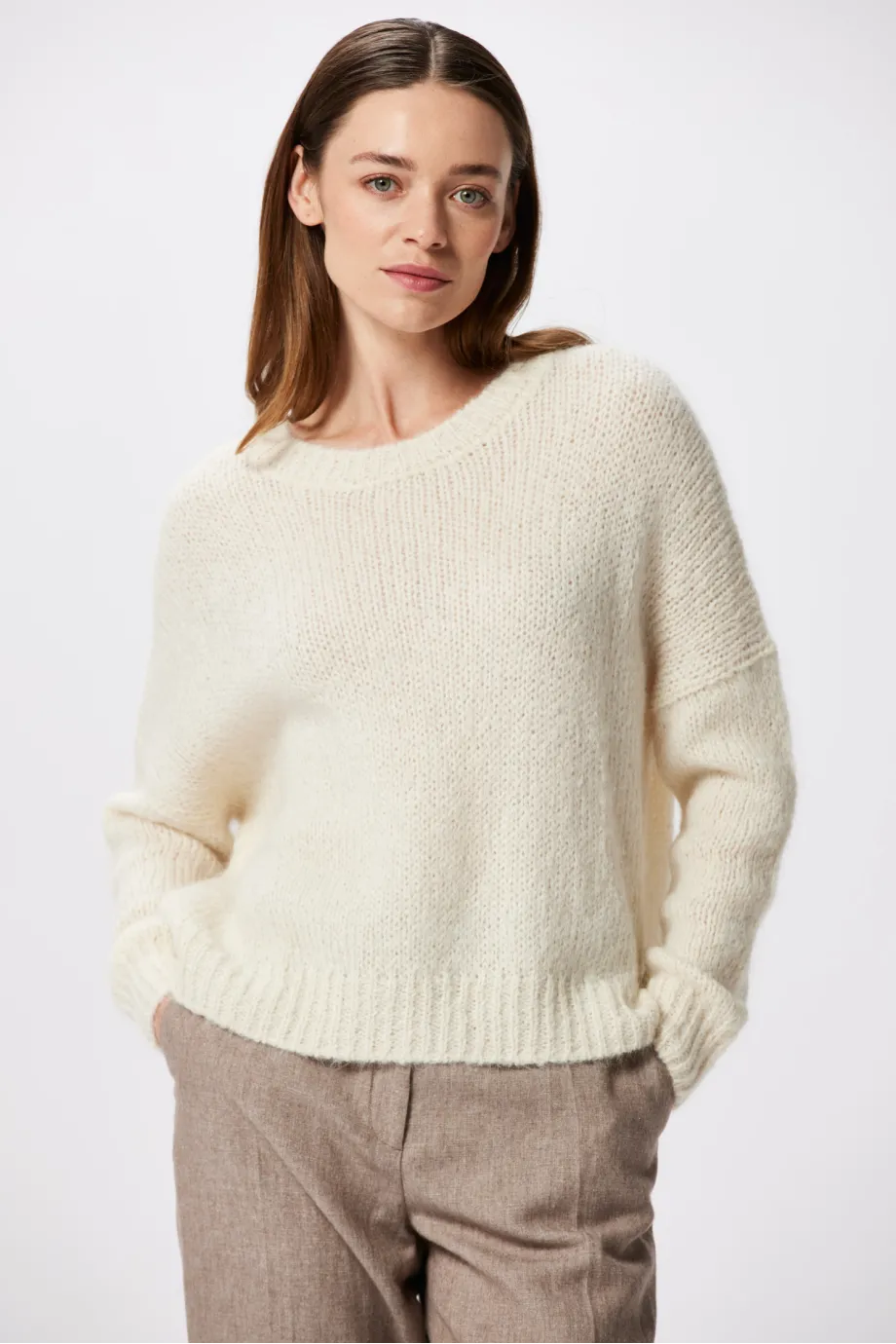 Weißer Pullover aus Suri-Alpaka- und Merinowollmischung
