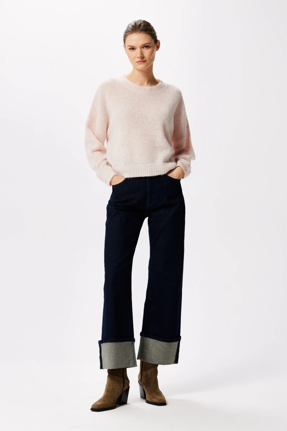 Dunkelblaue Jeans mit weitem Umschlag