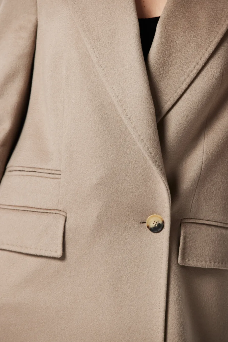 Verschluss mit außenliegendem Hornknopf und innenliegendem Knopf aus Naturnuss