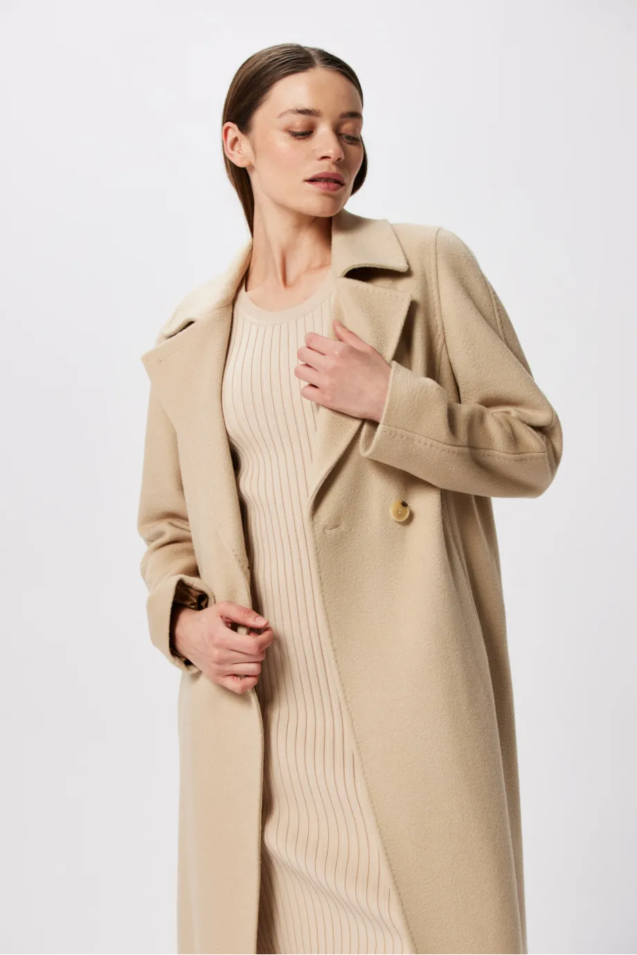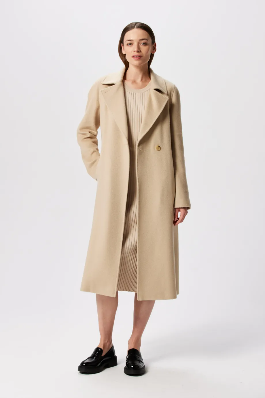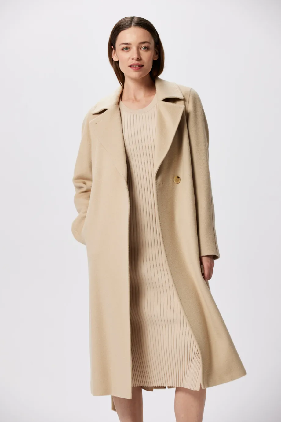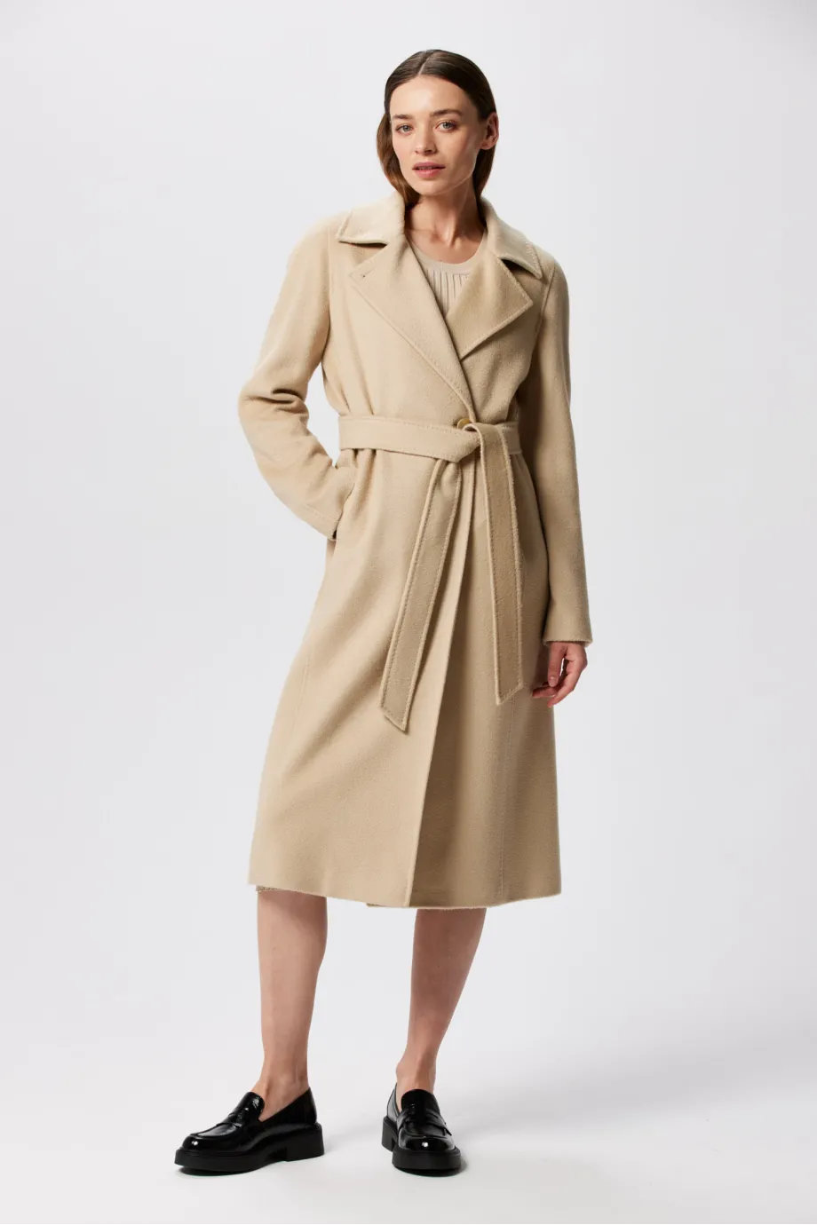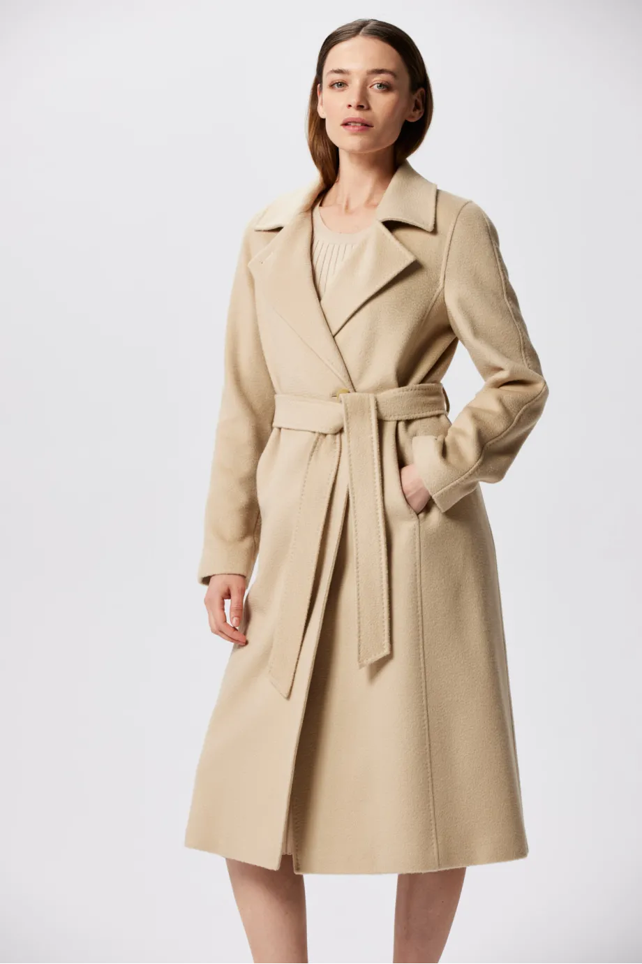 Midi-Wollmantel aus Kamelwolle