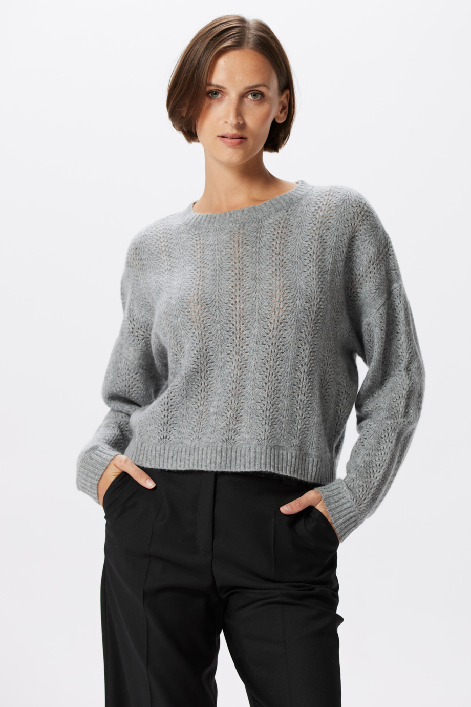 Grauer Wollpullover mit Kaschmir