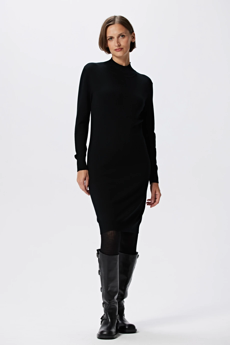 Schwarzes Midirockkleid aus Merinowolle