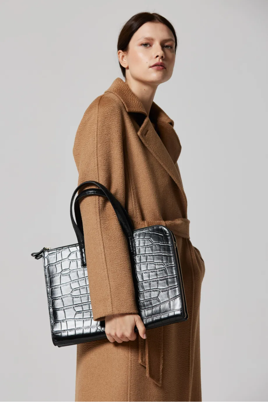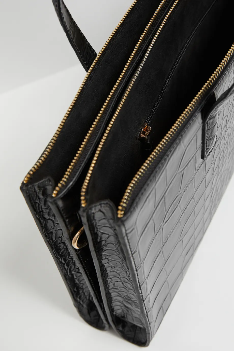 Hergestellt aus hochwertigem Naturleder mit einer Struktur, die der Krokodilhaut ähnelt.