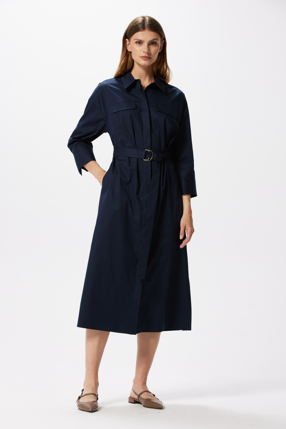 Dunkelblaues Hemdblusenkleid mit Gürtel