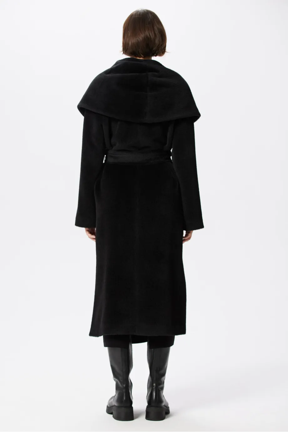Schwarzer Mantel mit Kapuze aus Suri-Alpaka Evercoat