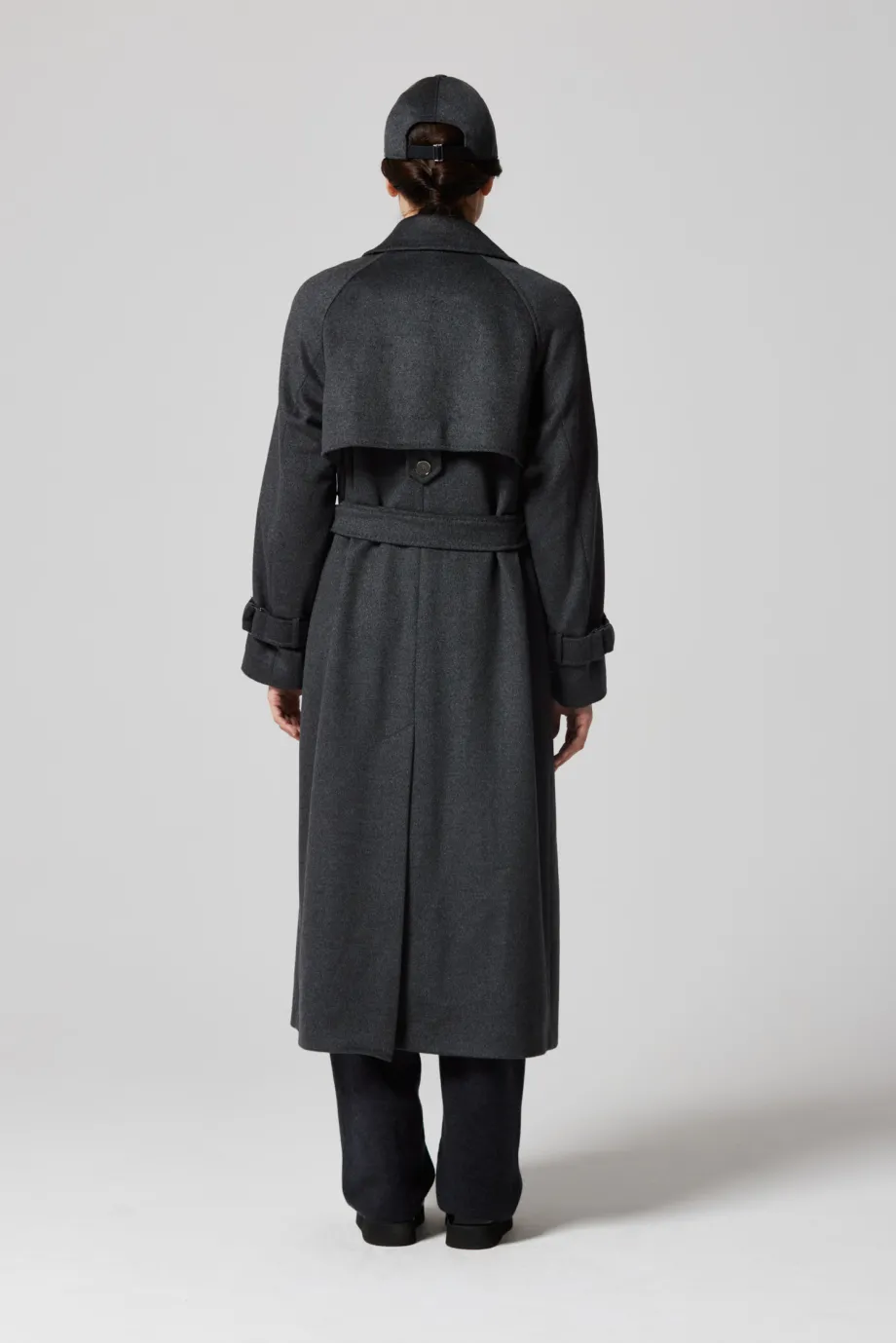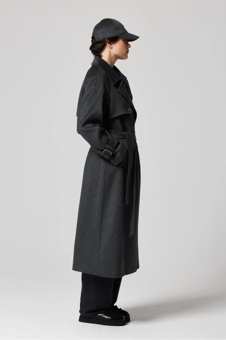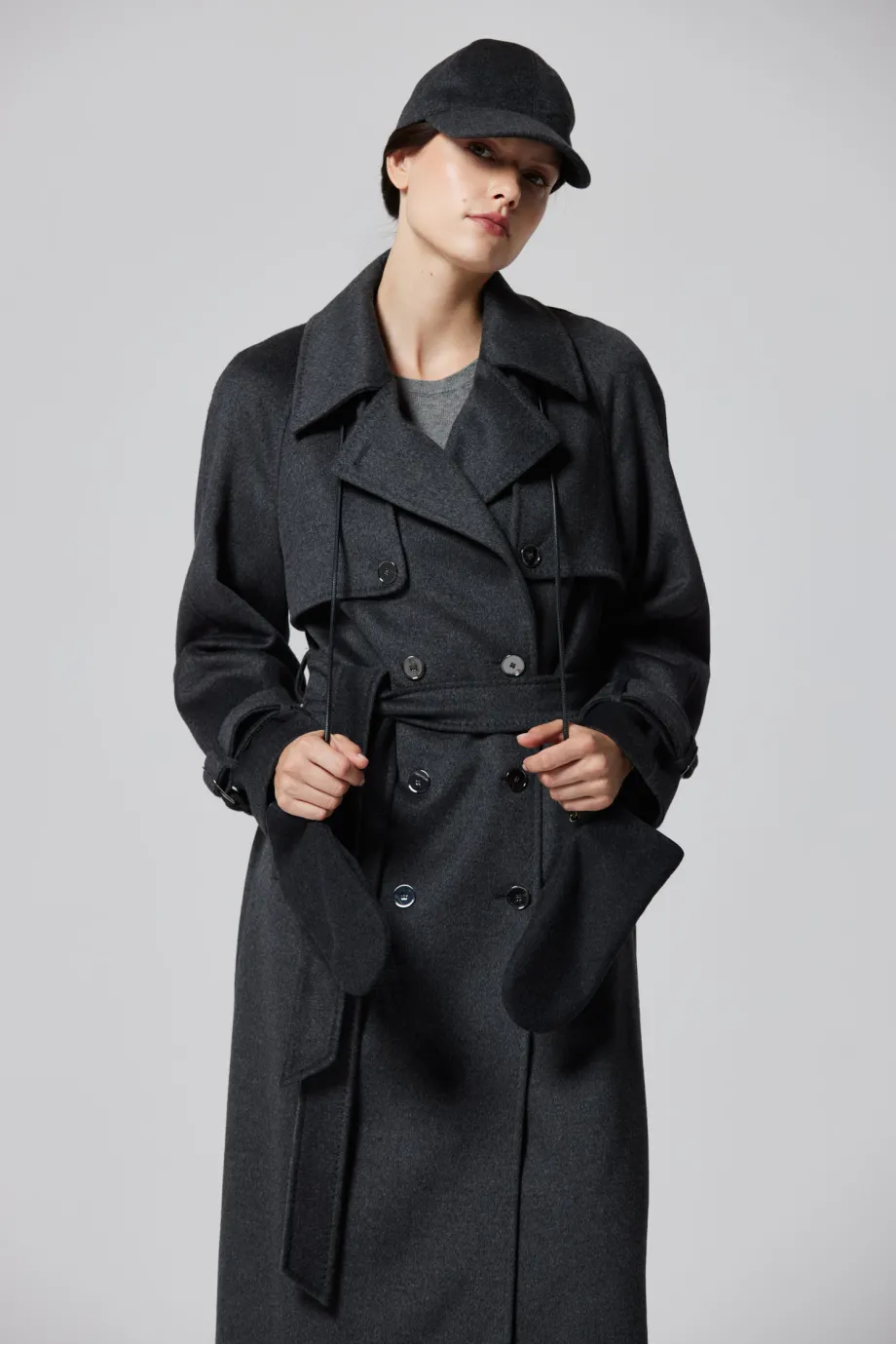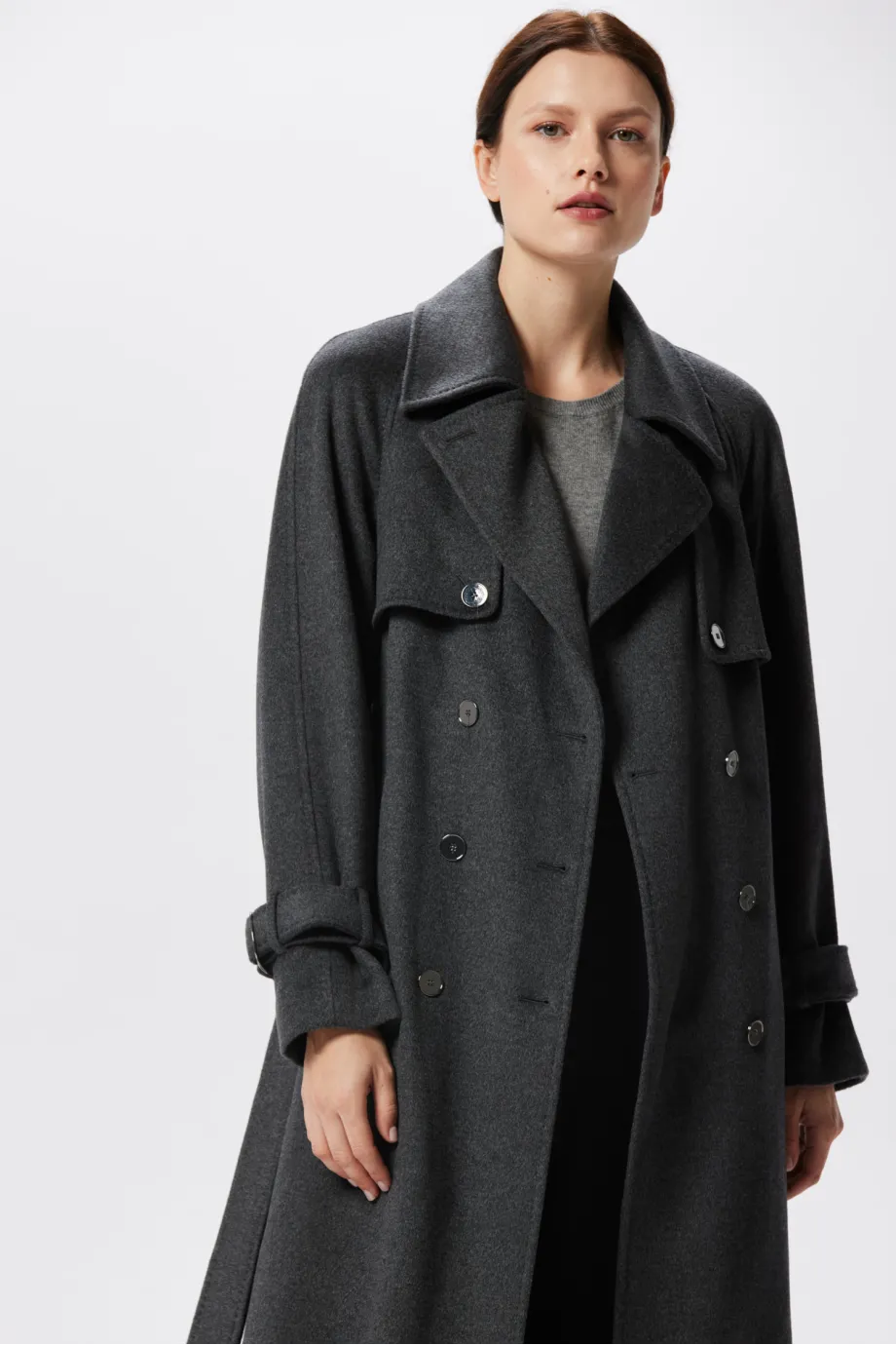 Grauer Woll-Trenchcoat mit Seide und Kaschmir