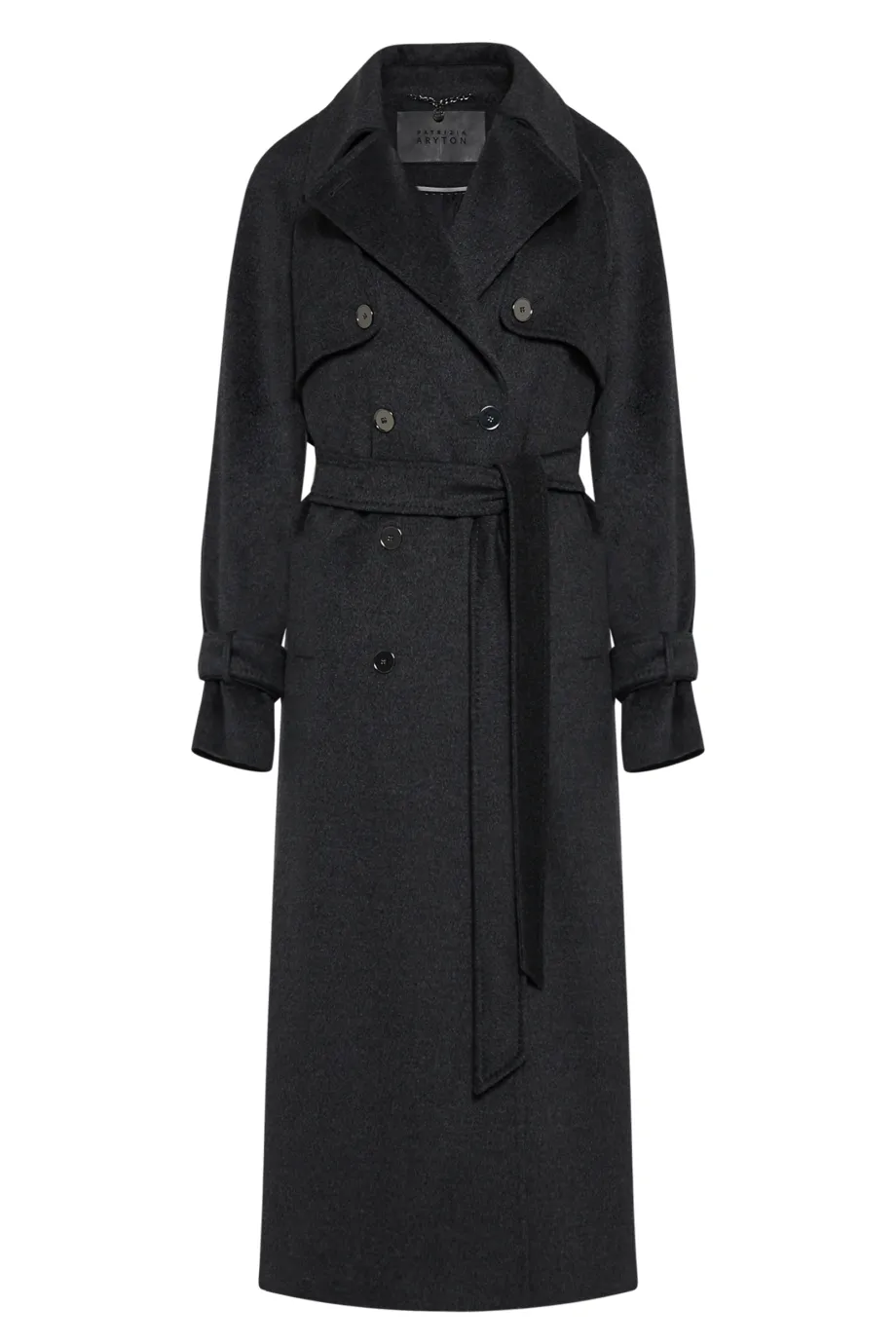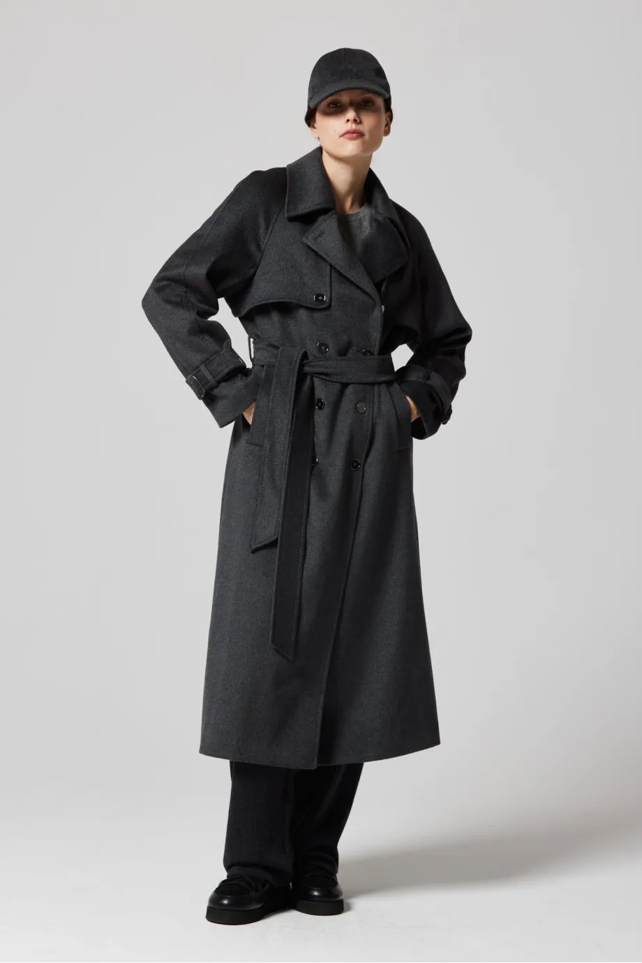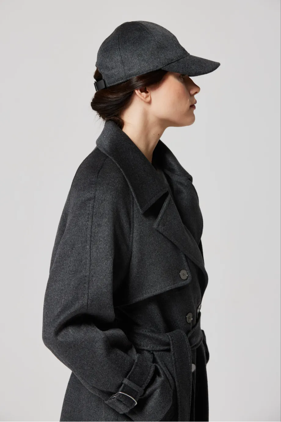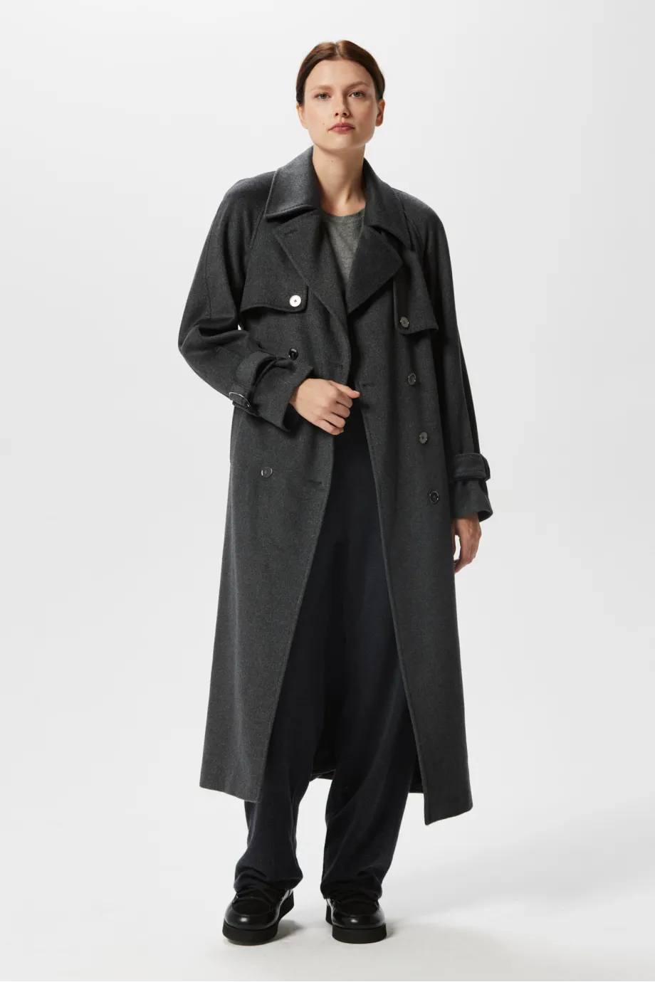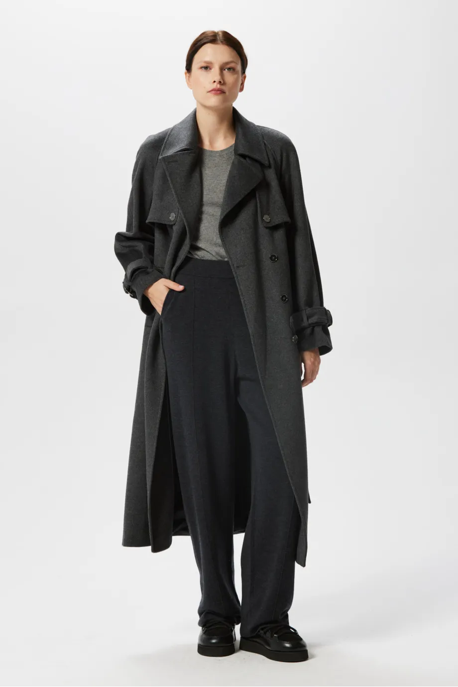 Grauer Woll-Trenchcoat mit Seide und Kaschmir