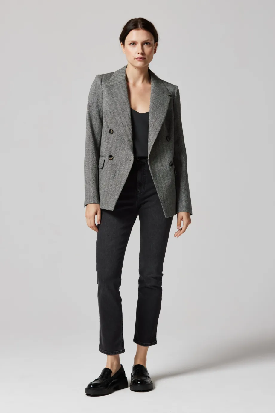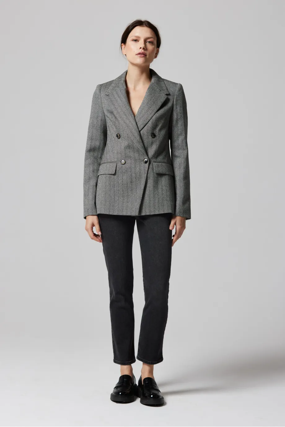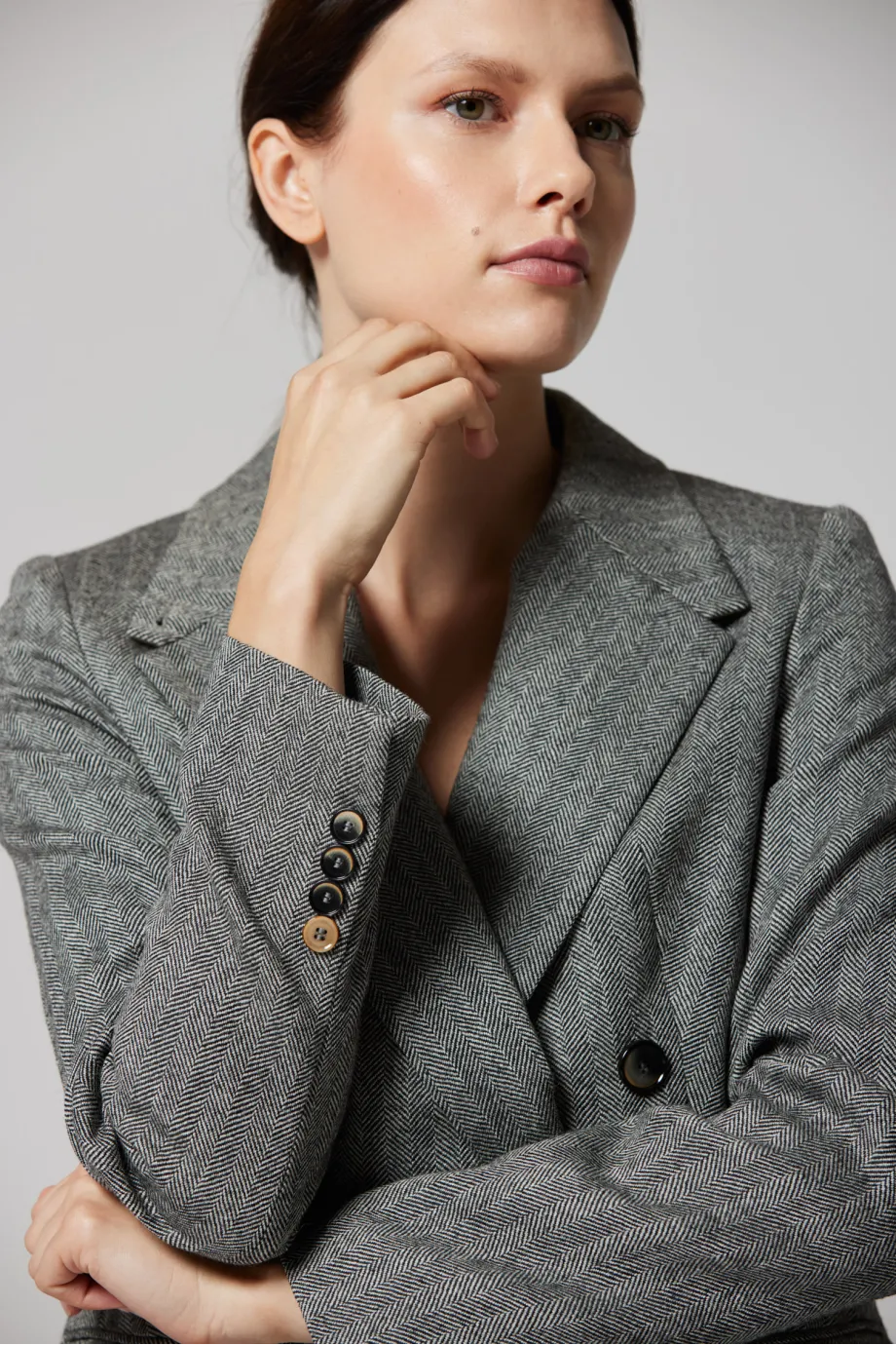 Zweireihiger Blazer mit langen Ärmeln und Verschluss unter dem Hals