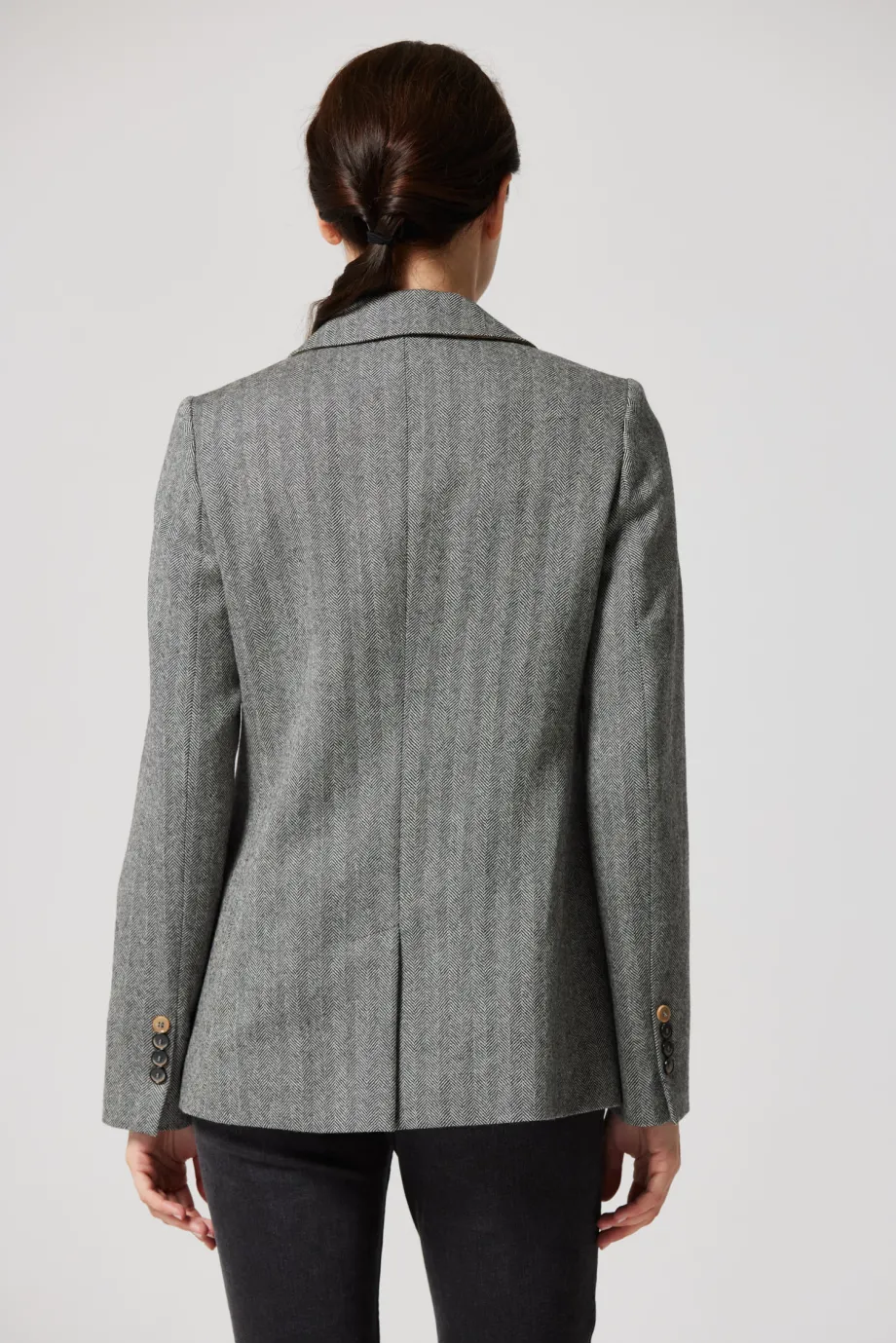 Fischgrätgewebter Stoff, unter dem Kragen Stoff in Kamel-Farbe