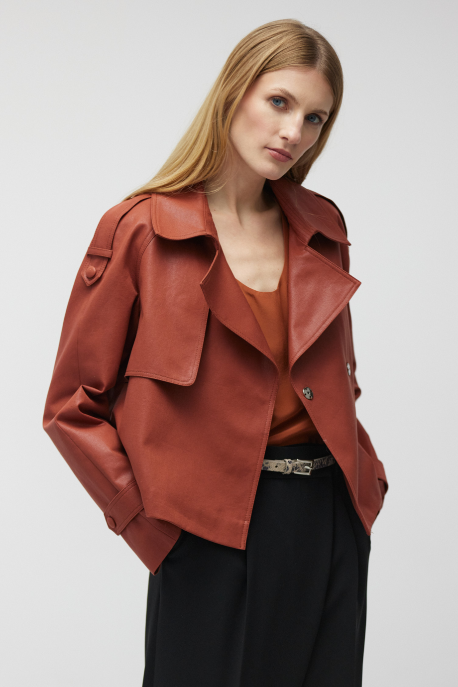 Kurze Baumwolljacke in ziegelroter Farbe.