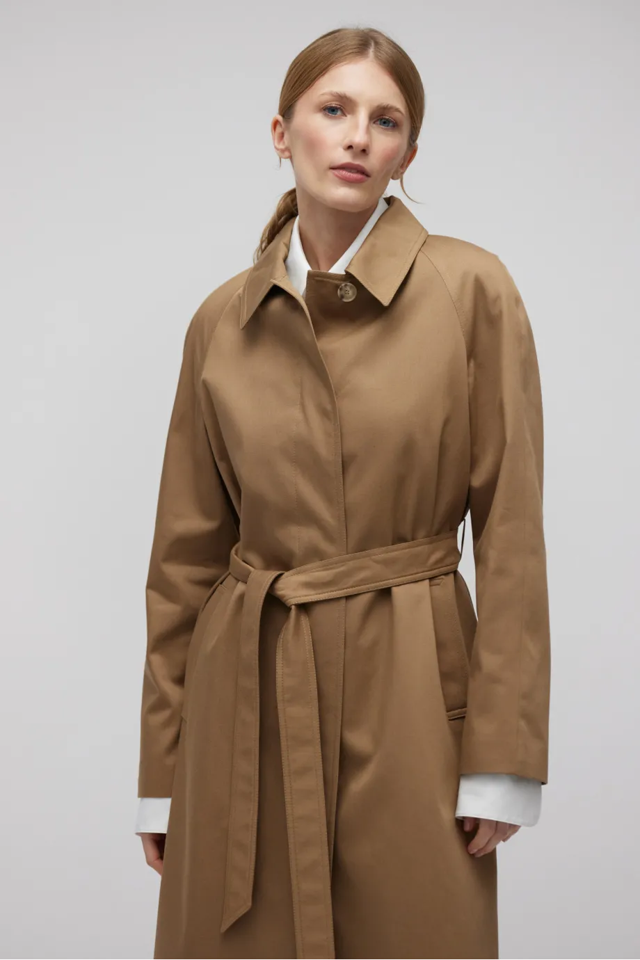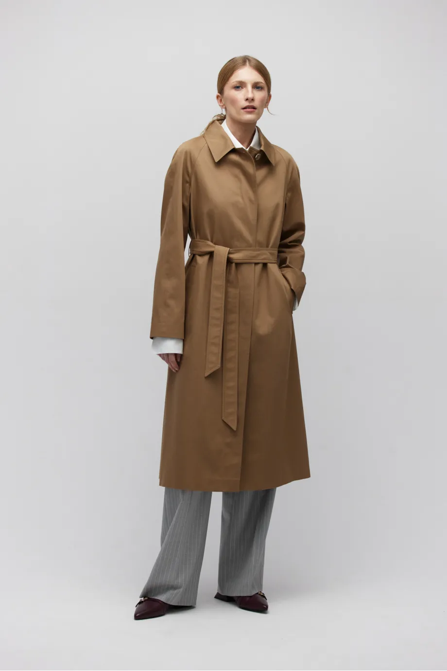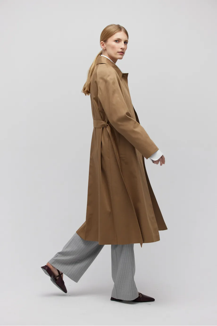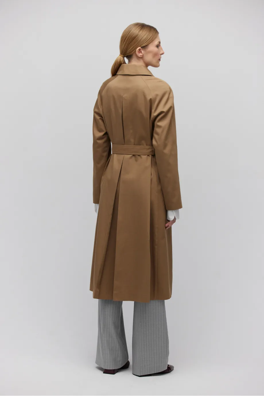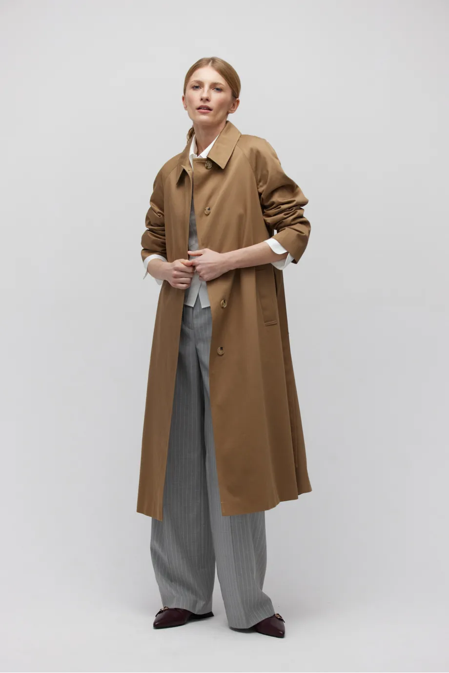 Verfügt über Taschen, Falte hinten und mittlere Länge.