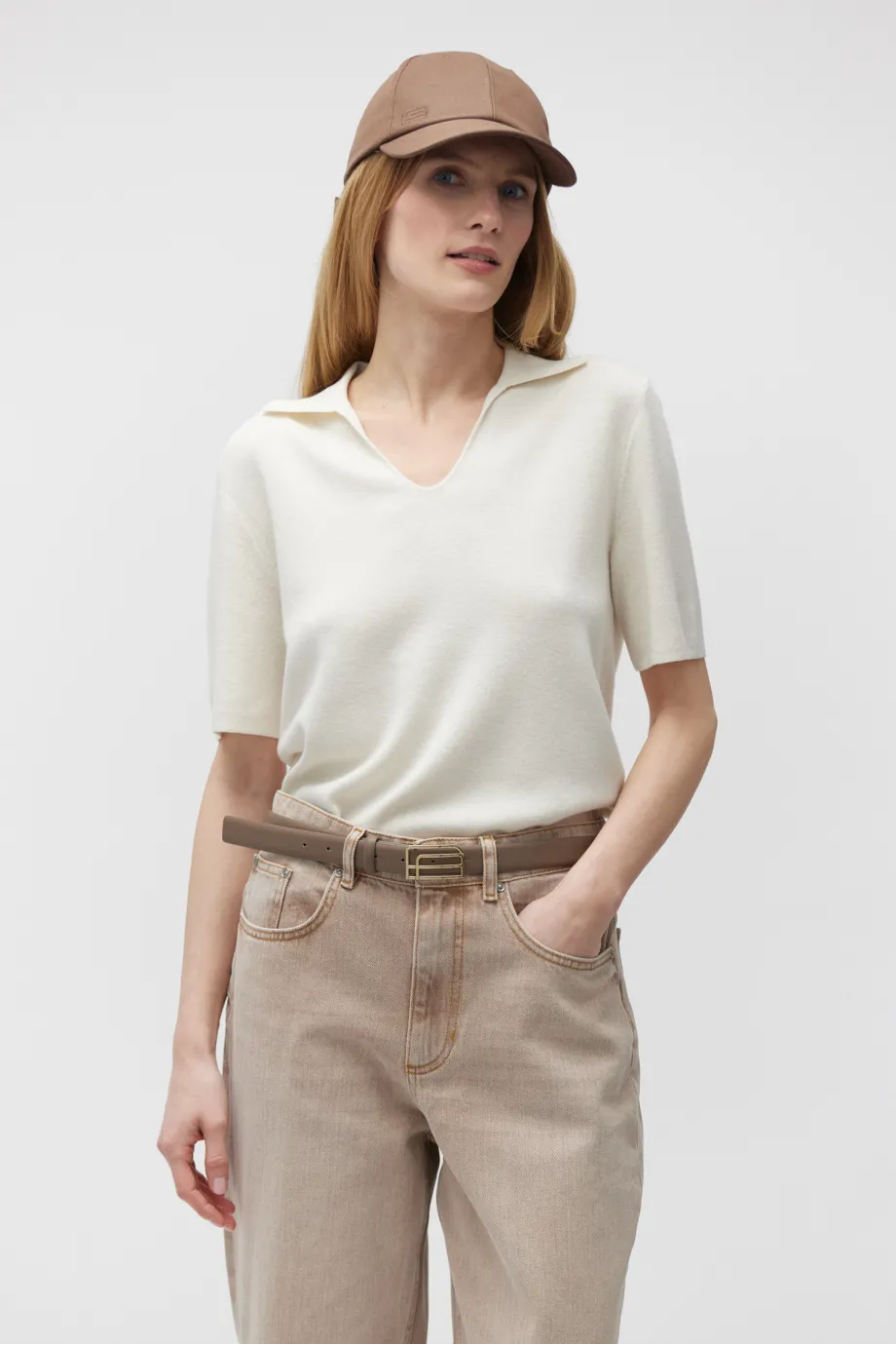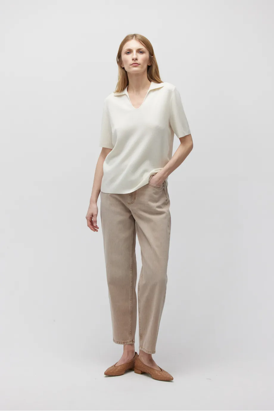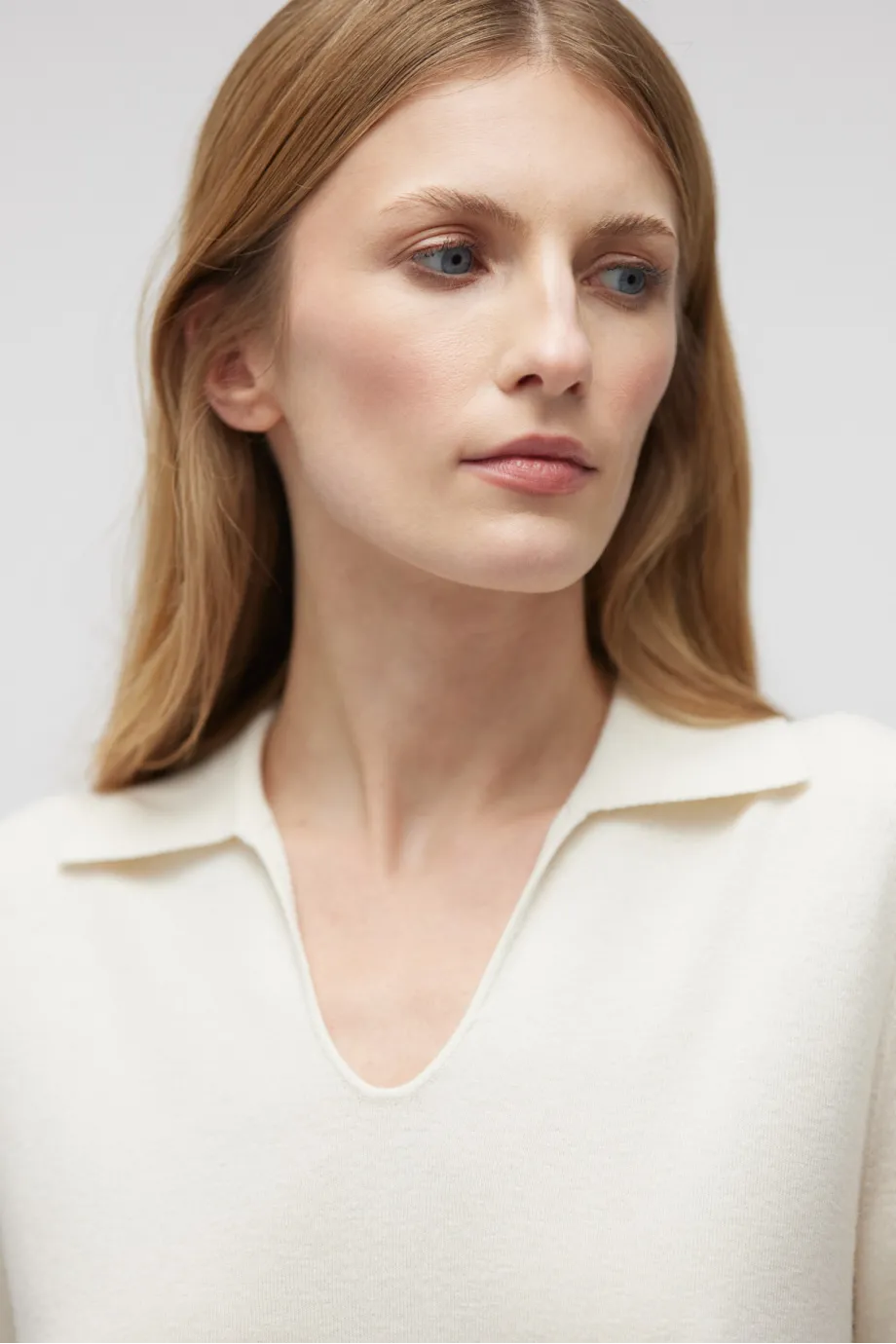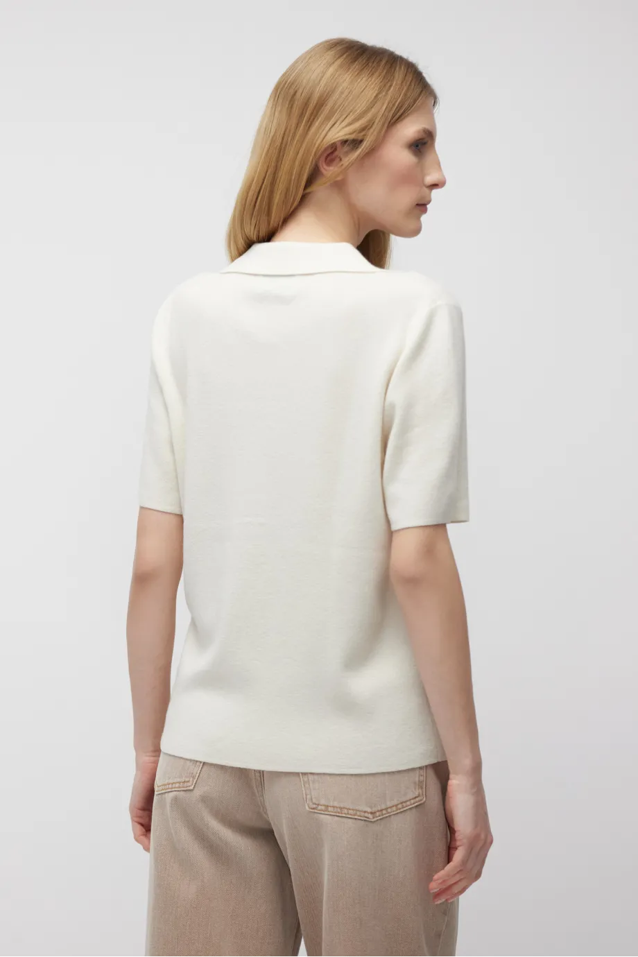 Weiße Polo-Bluse aus Merinowolle