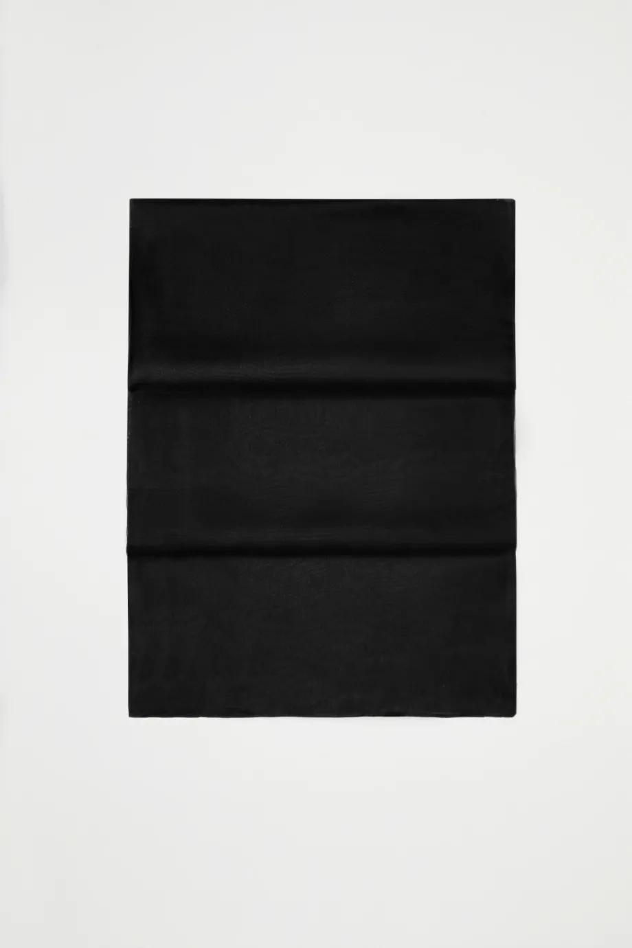- Großer Schal aus zartem, transparentem, schwarzem Seide gefertigt
