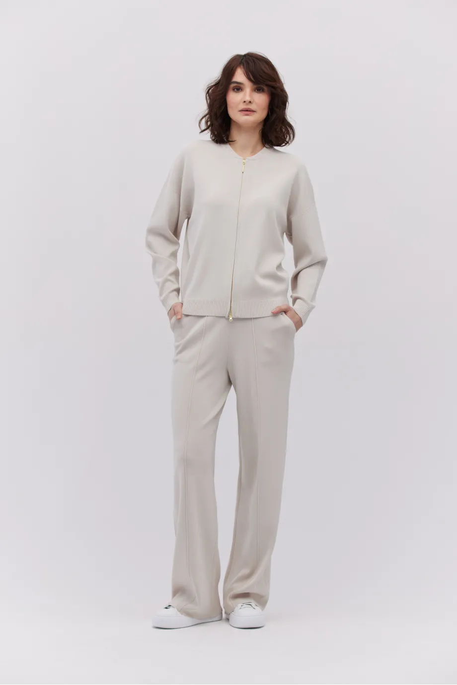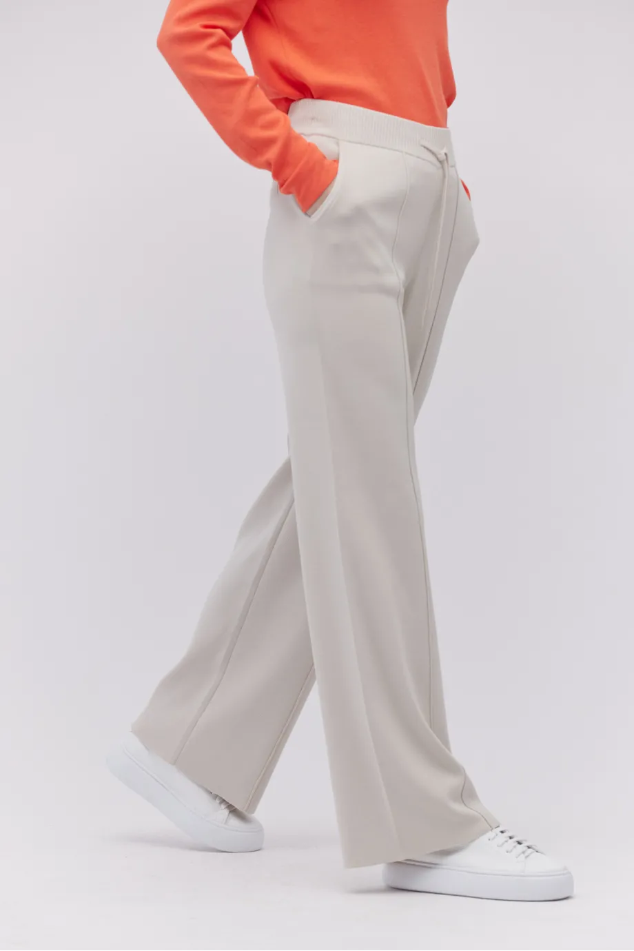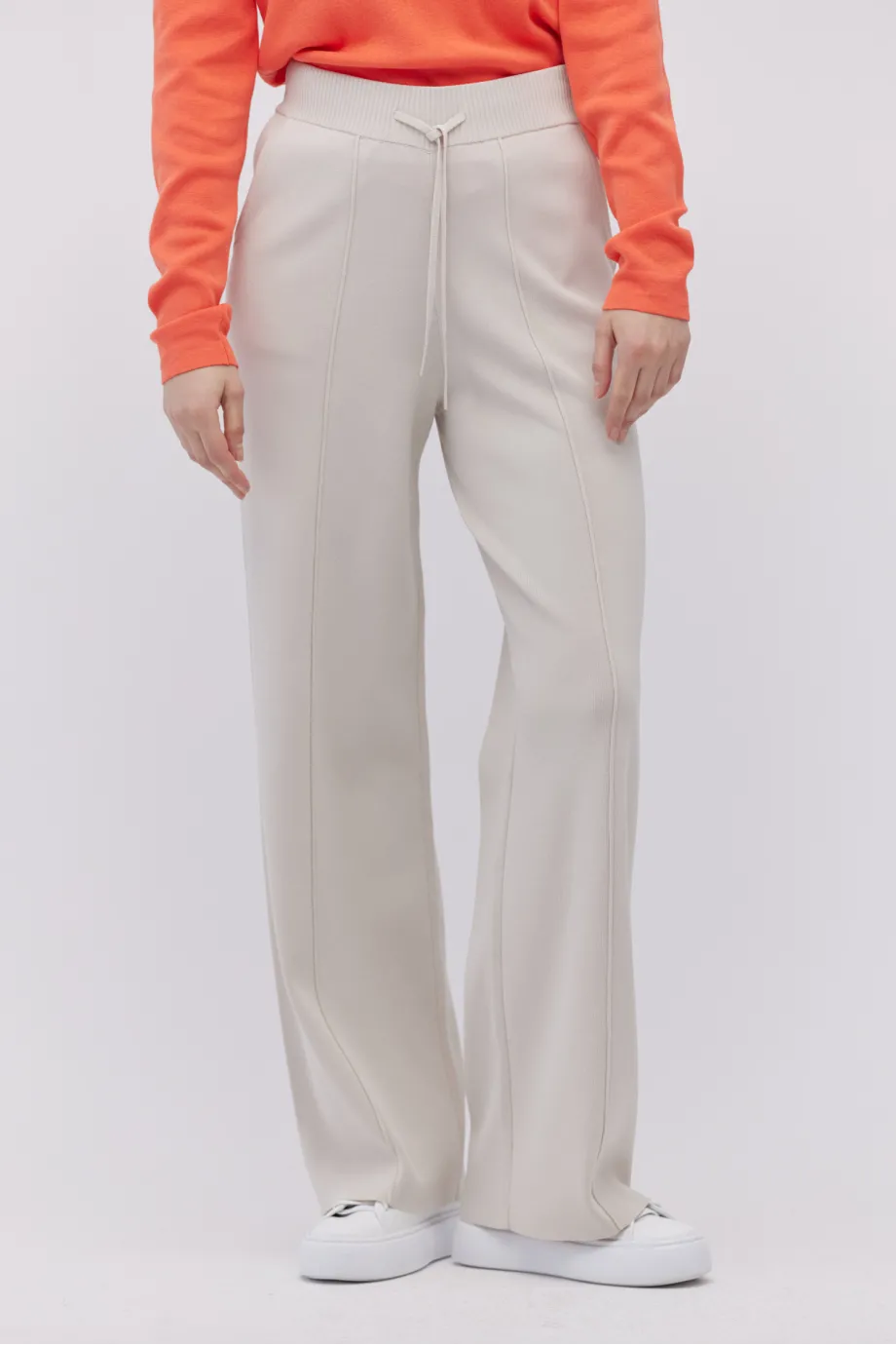 Strickhose mit weitem Bein in steinbeige.