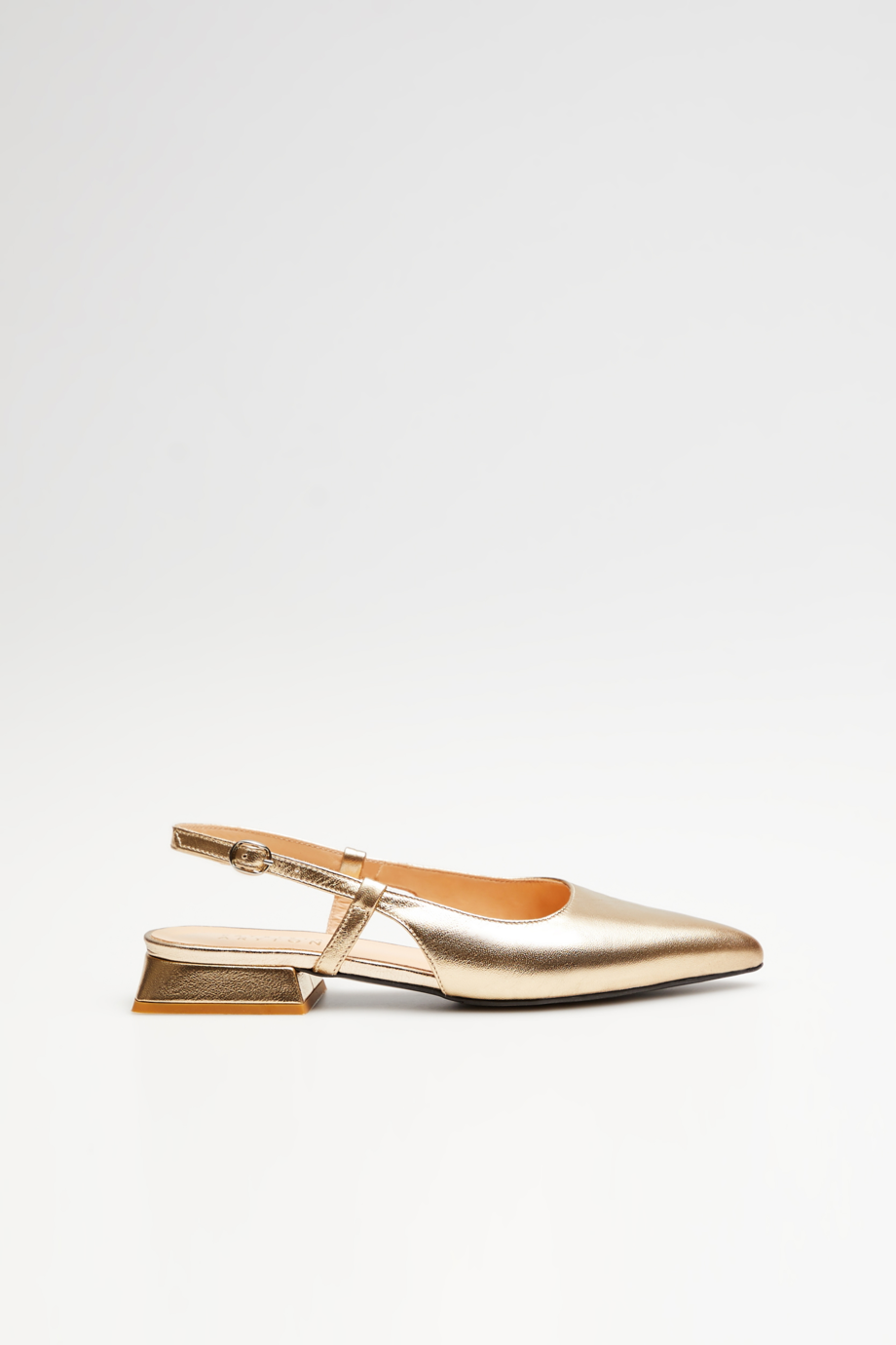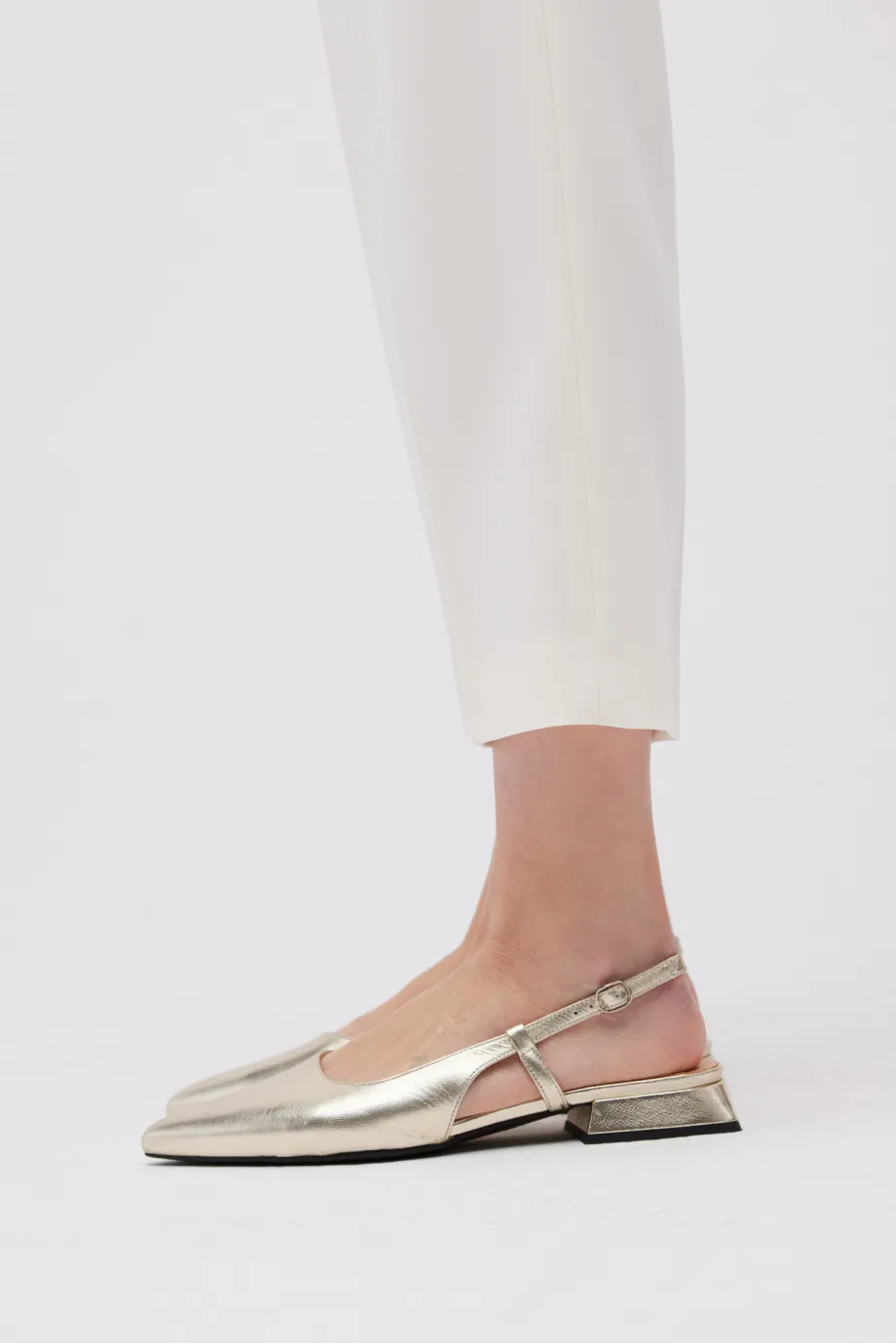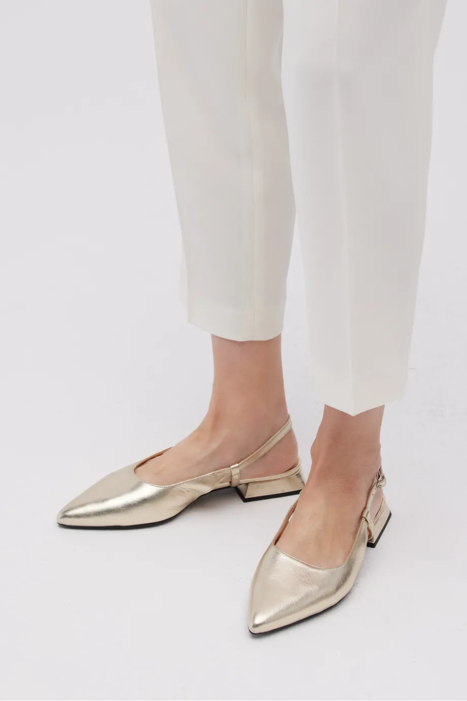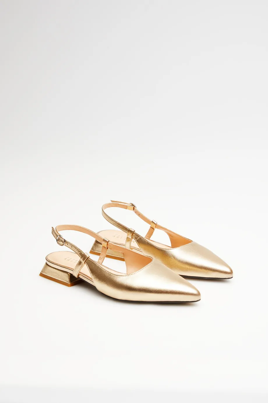 - Slingback-Schuhe mit offenem Fersenbereich, gefertigt aus natürlichem, weichem Ziegenleder in stilvollem Goldton