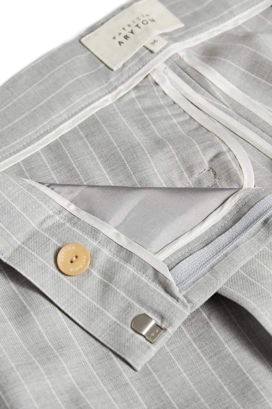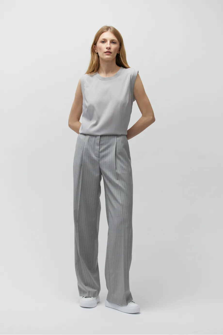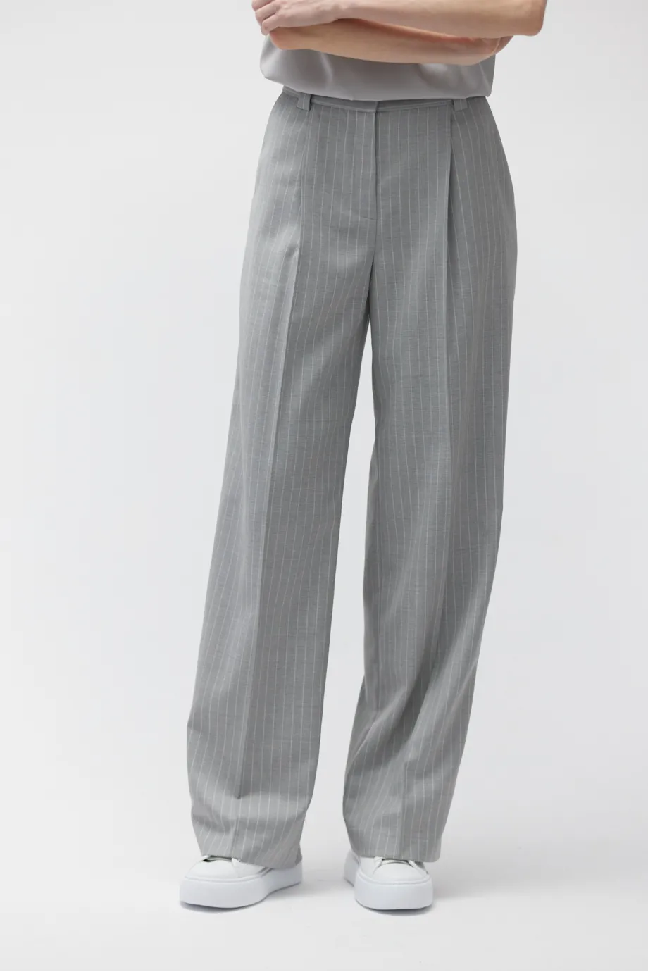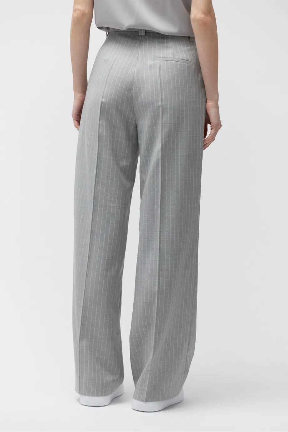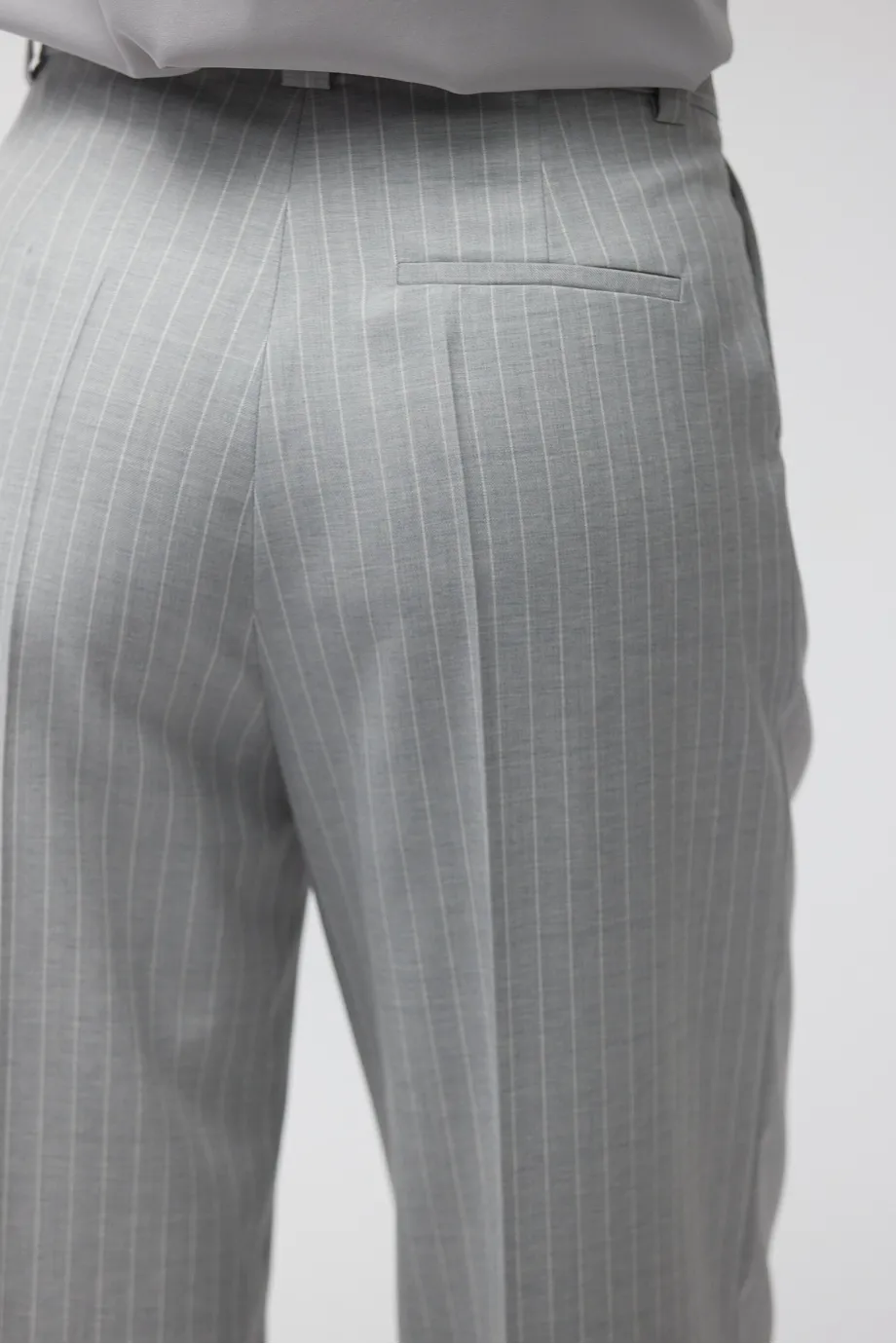 Hose aus hochgedrehter Wolle im klassischen Tennisstil in Grauschattierung.