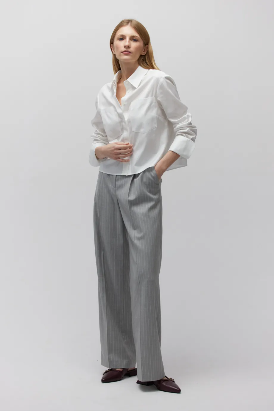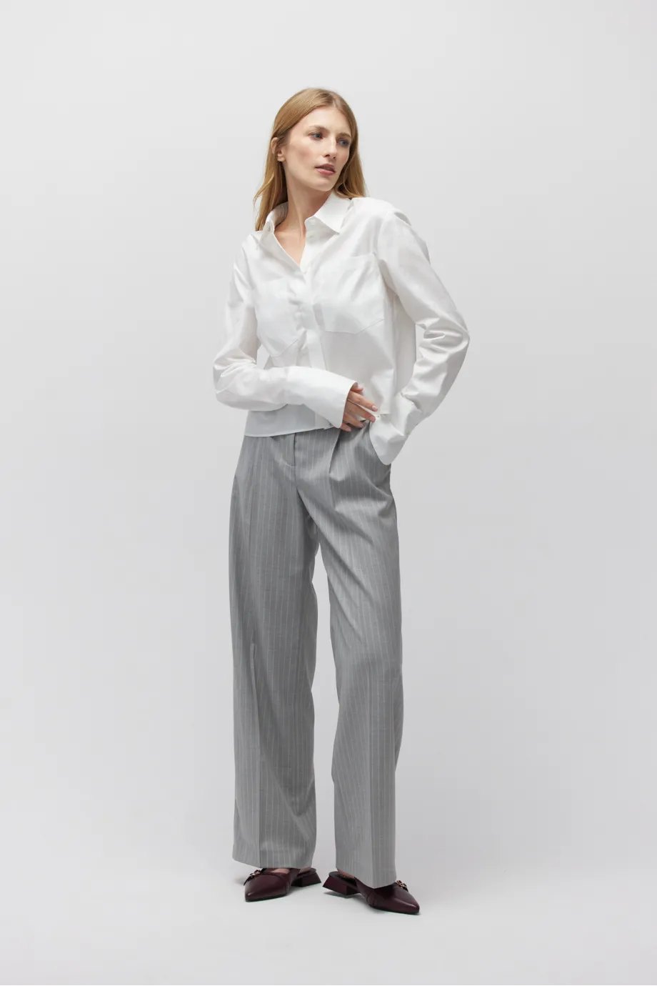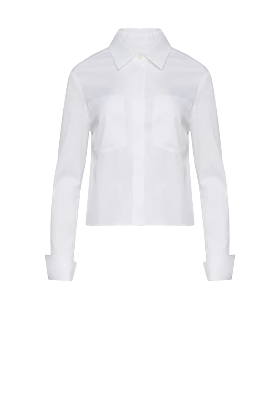 Langer Ärmel mit dekorativ umgeschlagenem Manschettenbund, Kragen, Taschen und Perlmuttknöpfen.