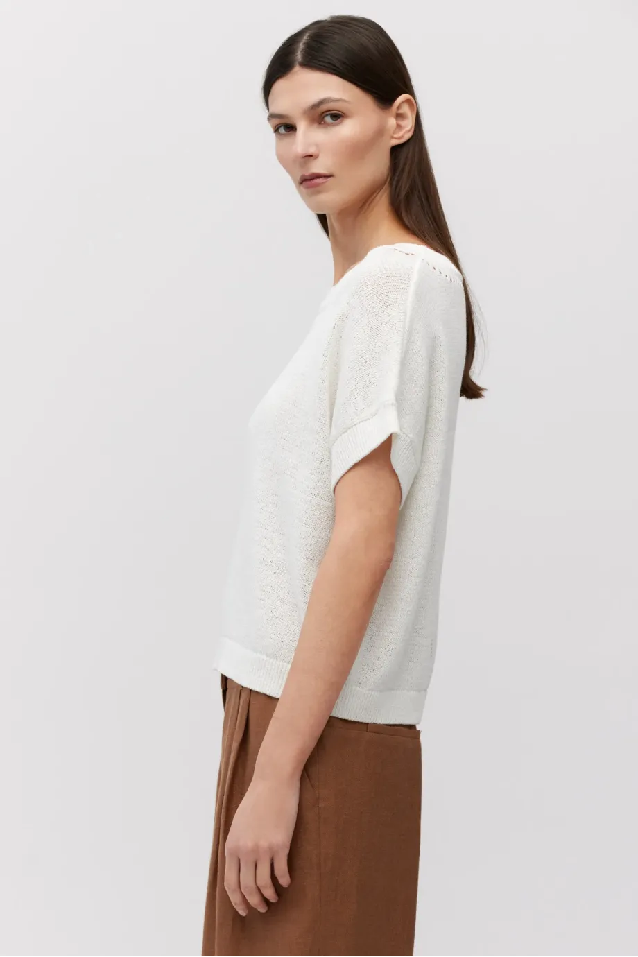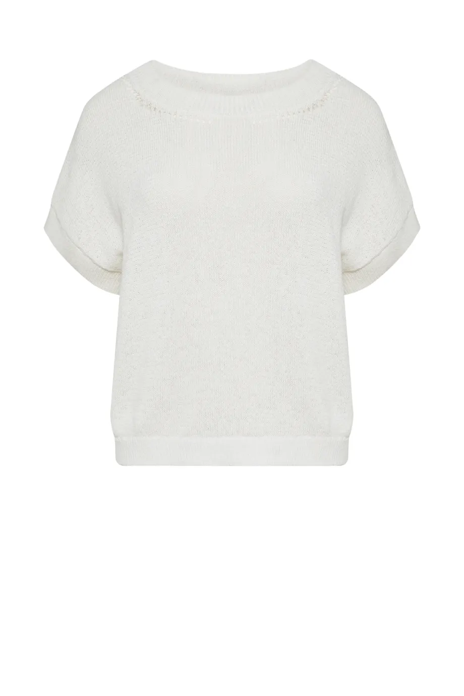 - Gerader Schnitt, kurze Ärmel und weicher, lockerer Strick im Plain-Knit-Muster