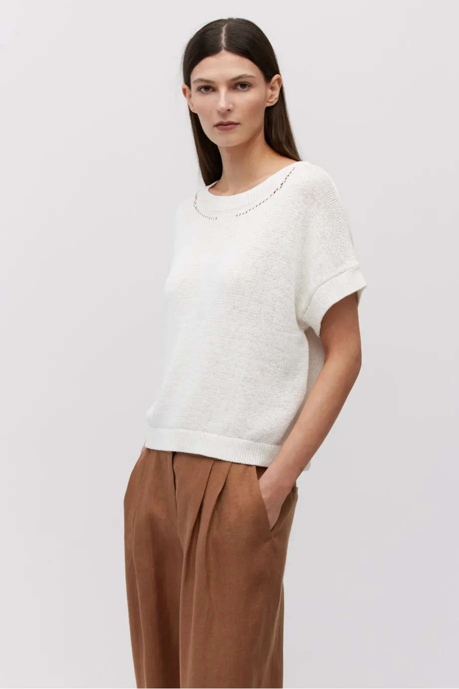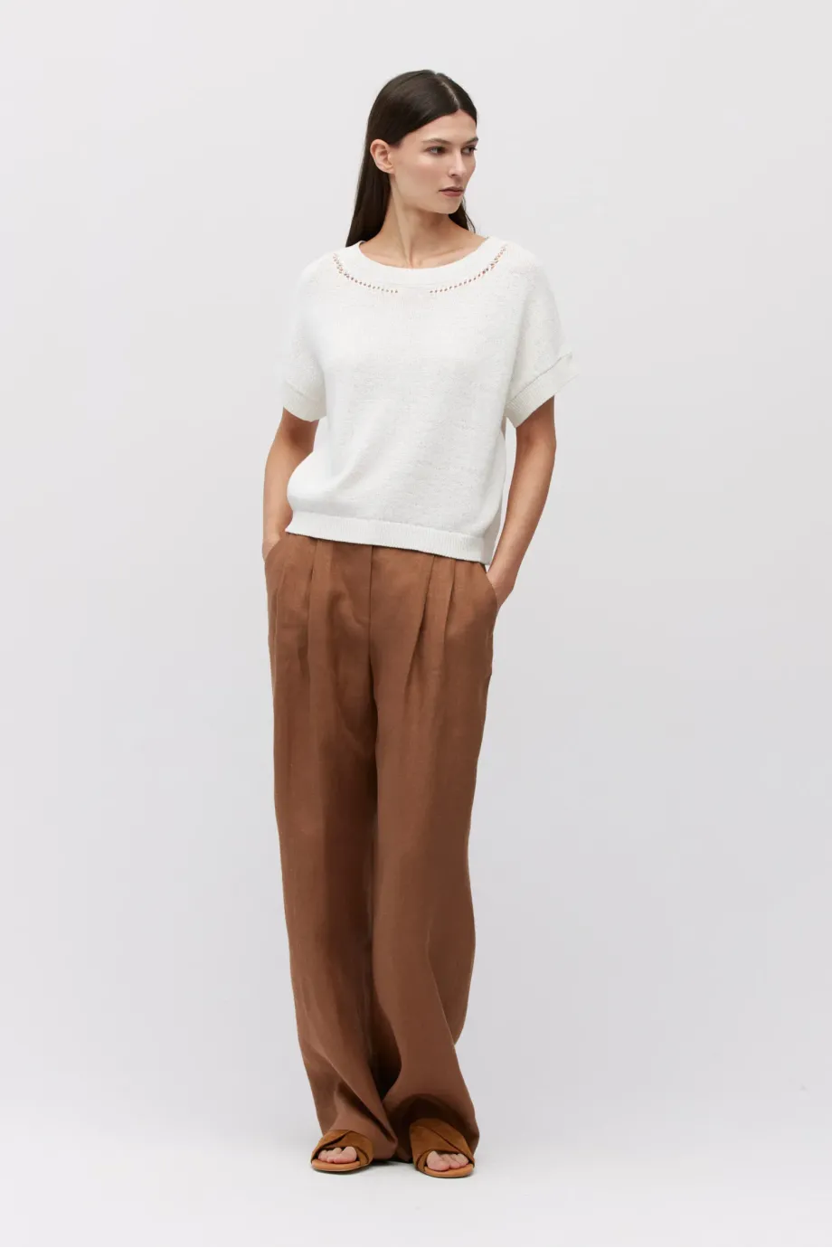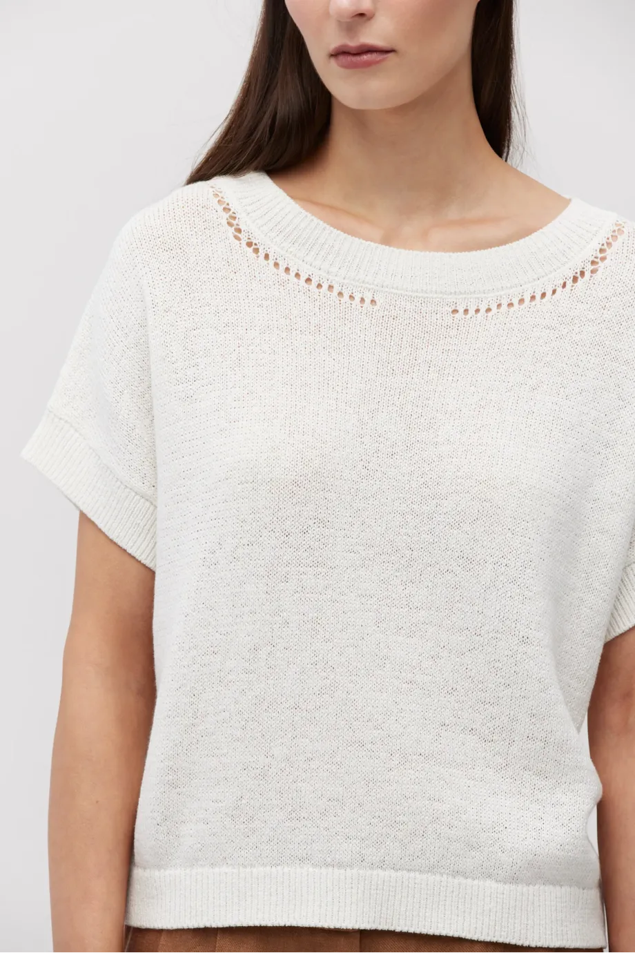- Weißes Oberteil aus Baumwolle und Leinen