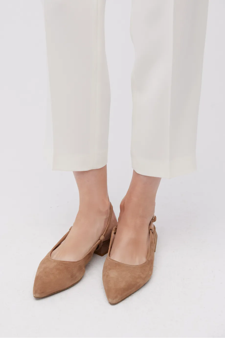 - Slingback-Schuhe mit offener Ferse, gefertigt aus weichem und bequemem Wildleder in einem hellbeigen Farbton
