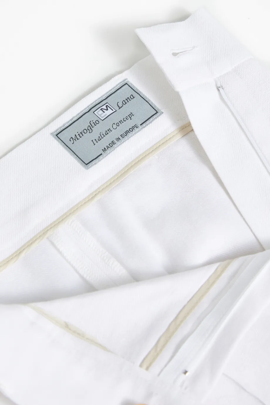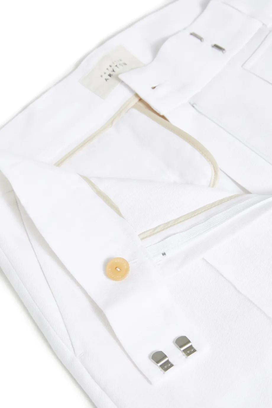 Verschluss mit Haken für einen glatten Bundabschluss, zusätzlicher Knopf aus natürlicher Corrozzo-Walnuss.