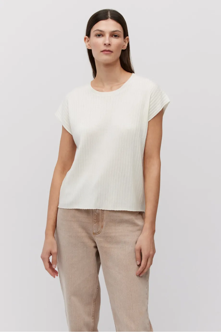 - Gerader Schnitt, kurze, leicht ausfallende Ärmel