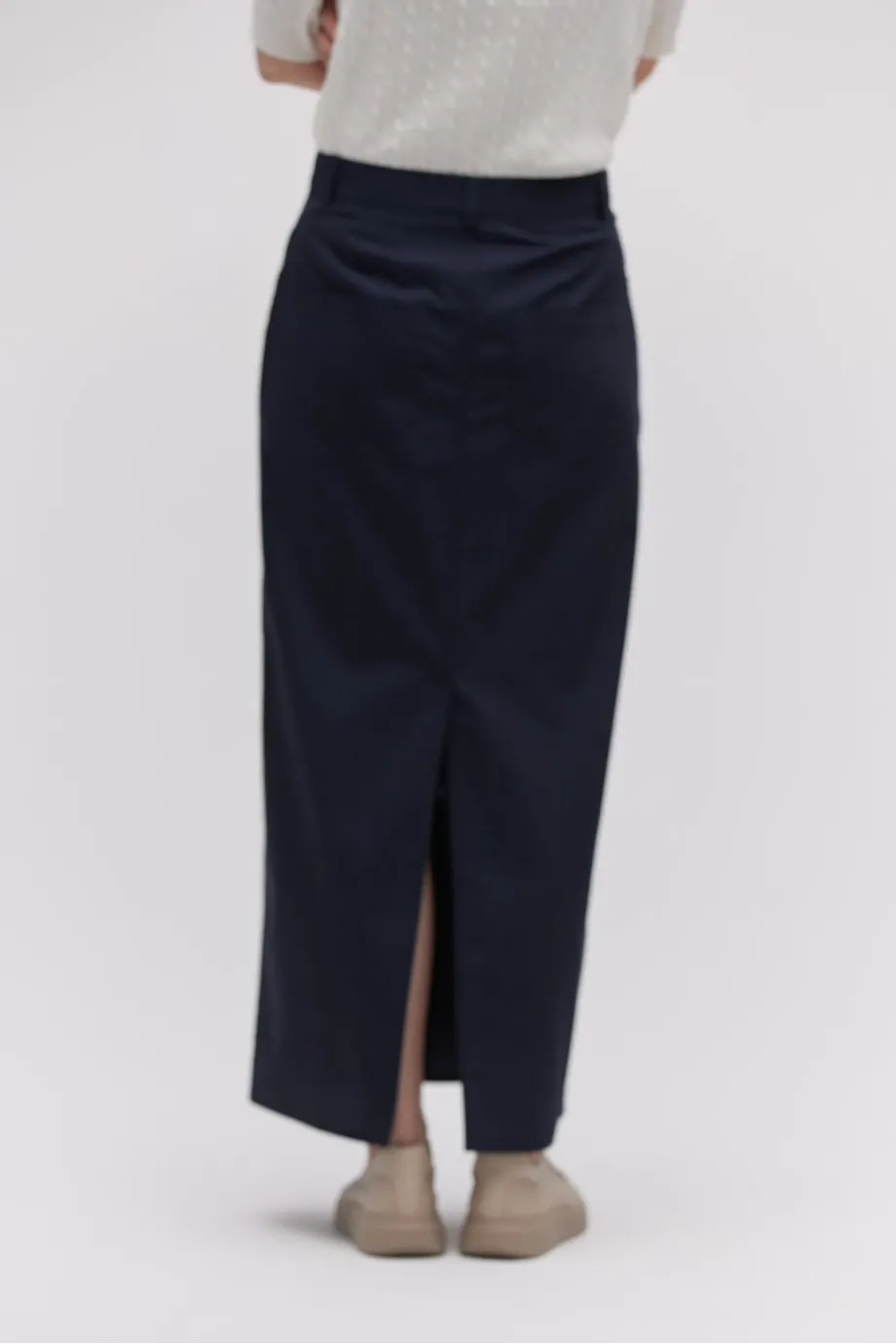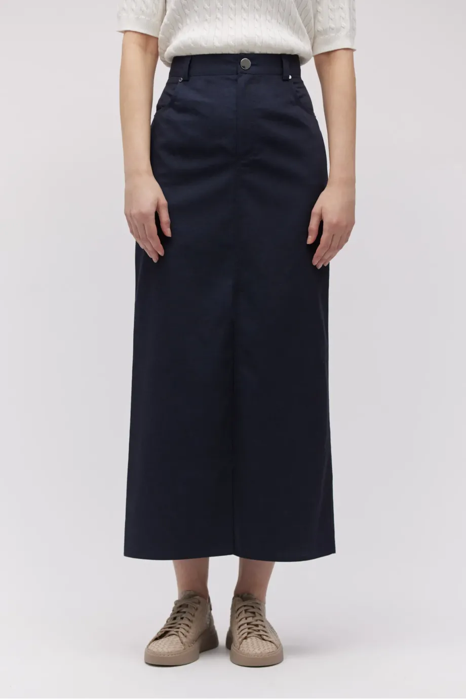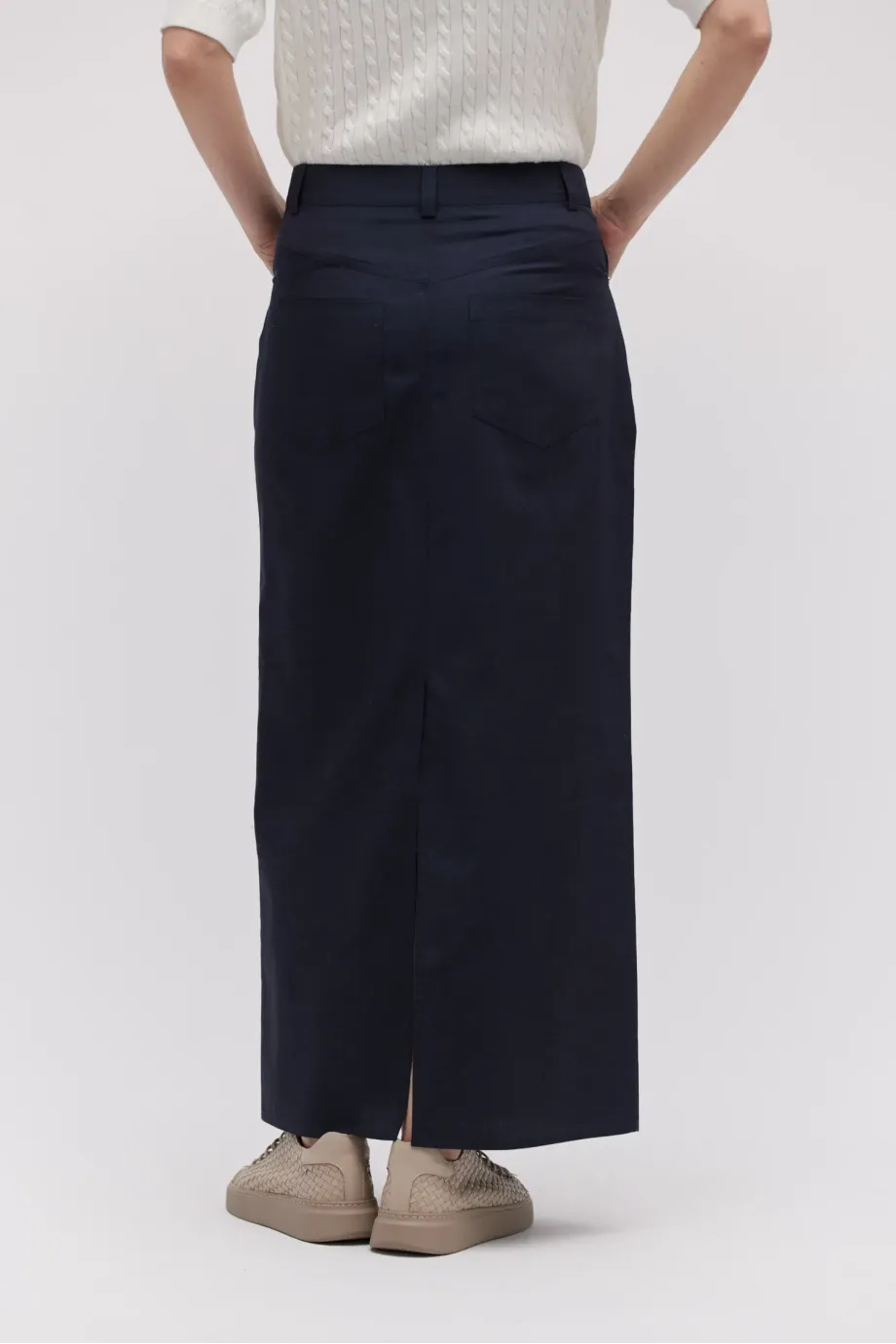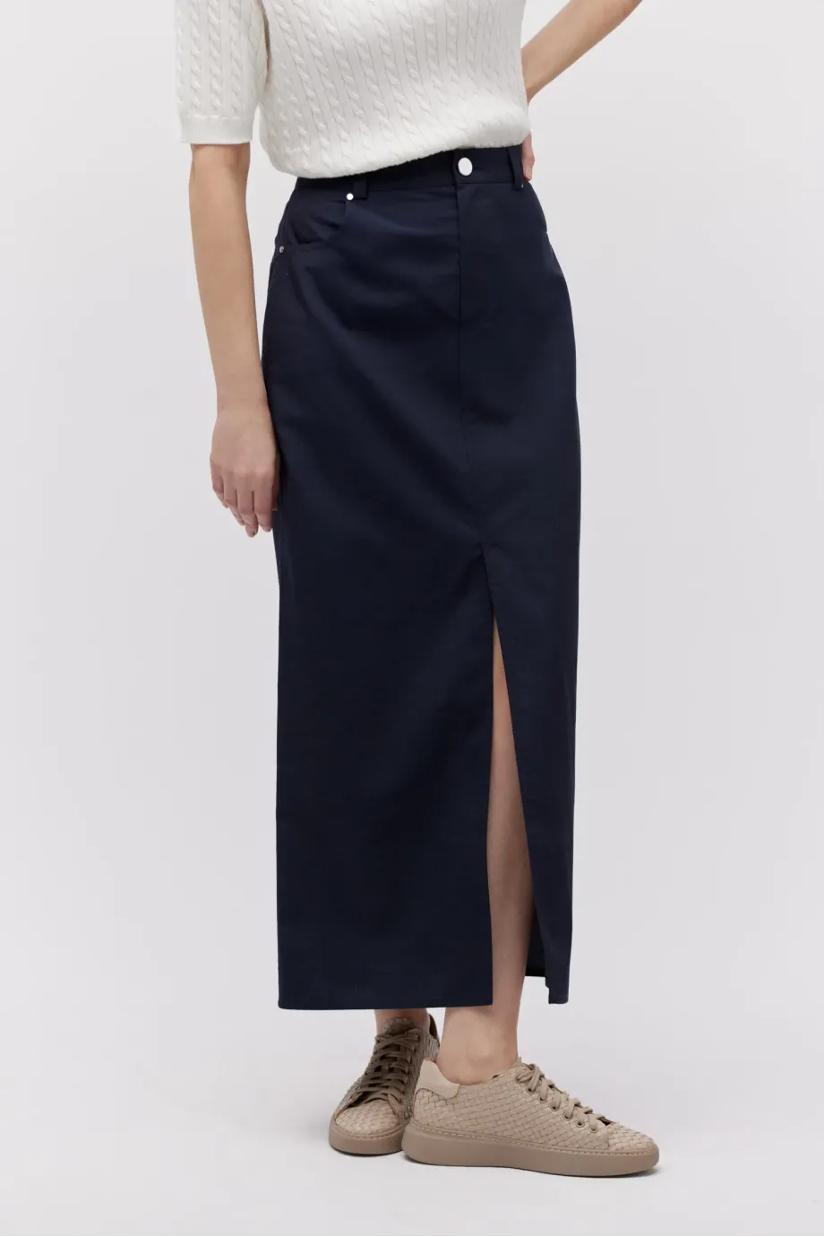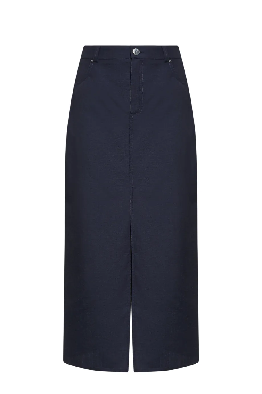 Modell mit Taschen, Knopf- und Reißverschluss sowie Schlitzen vorne und hinten.