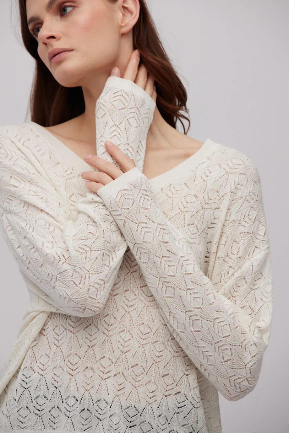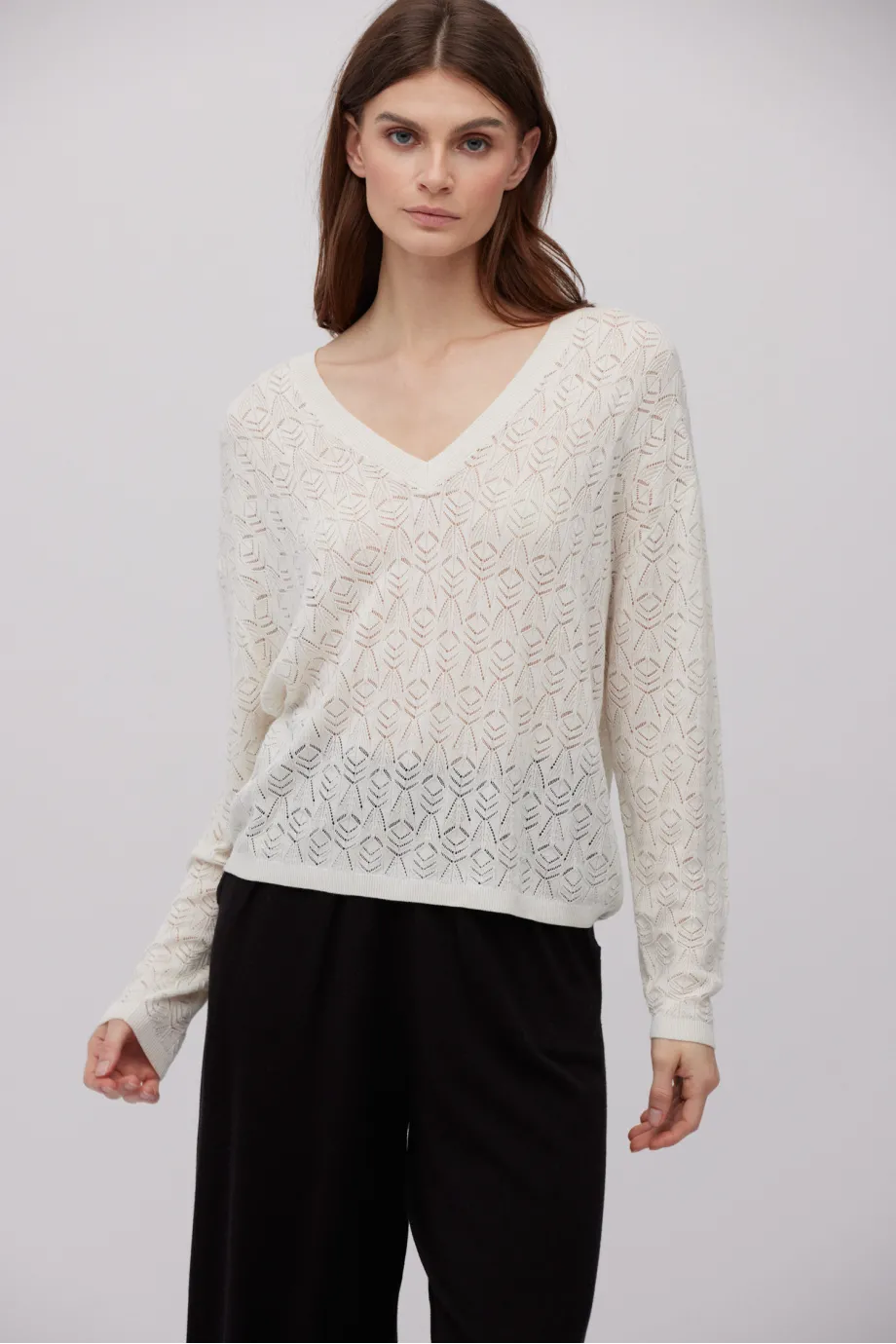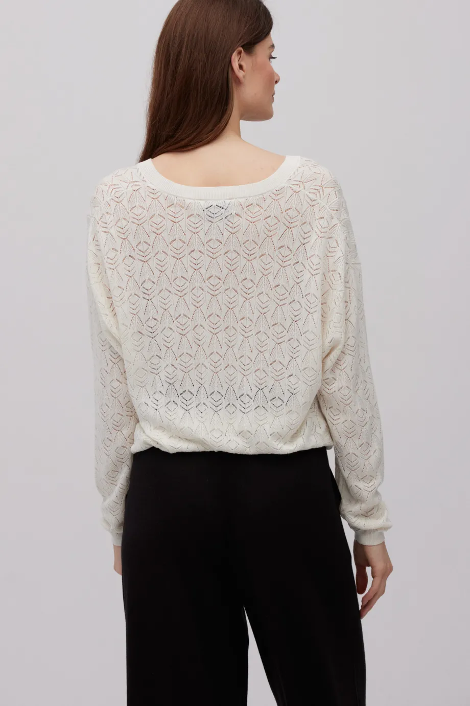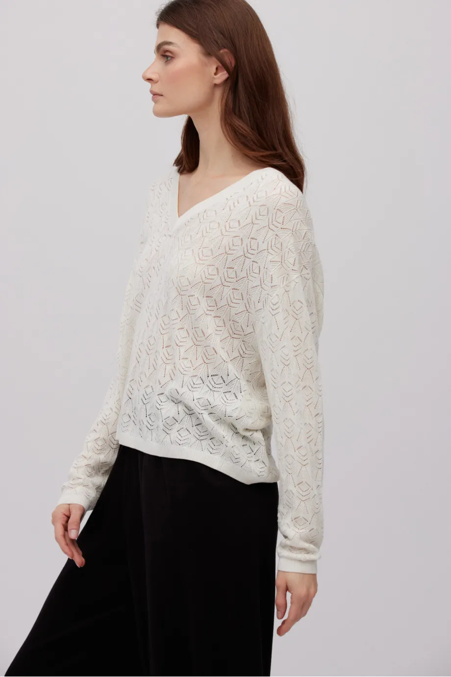 - Bluse mit Seide und Kaschmir, gefertigt im Open-Knit-Muster auf einer 16 GG-Maschine