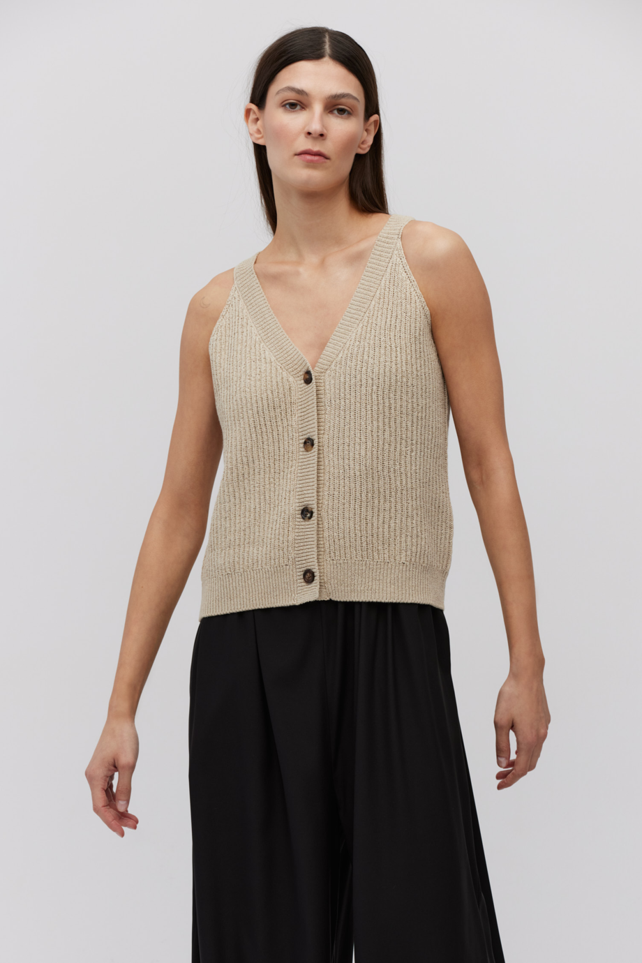 - Beiger Top mit Seide, im Halter-Schnitt