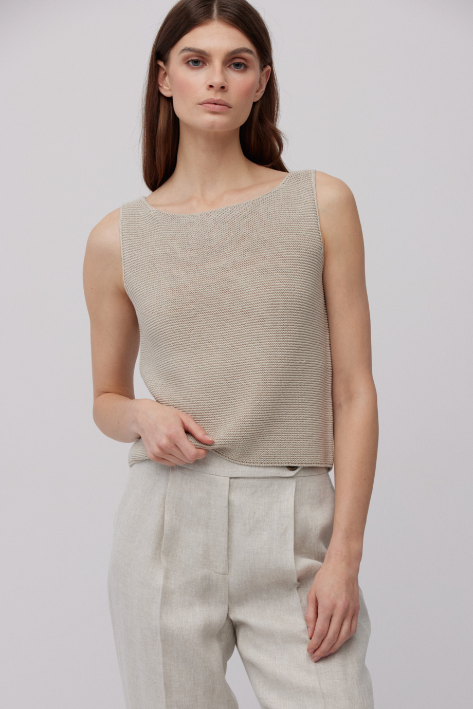 - Leinenbluse mit breiten Trägern, mit U-Boot-Ausschnitt und kürzerem Schnitt
