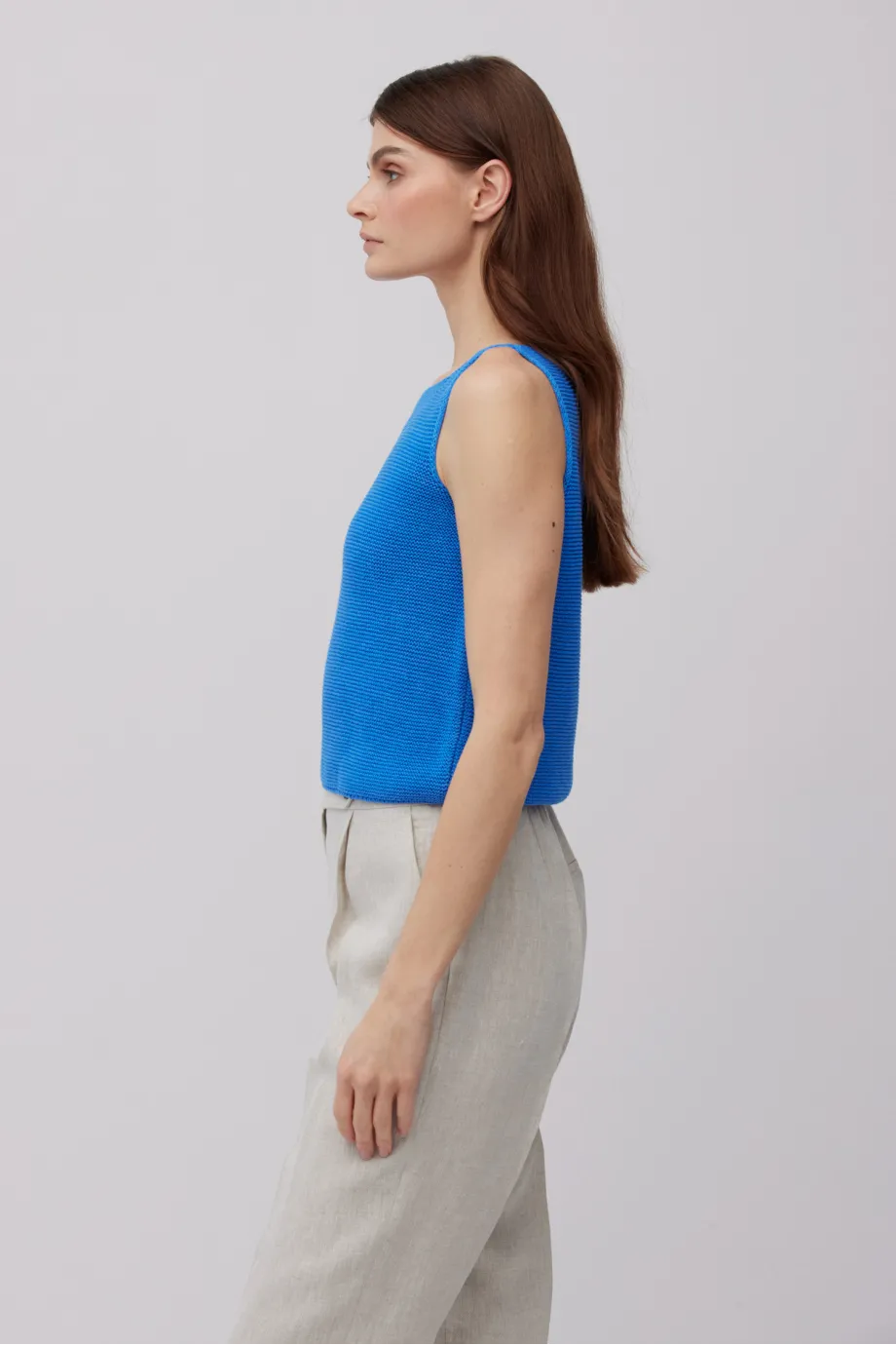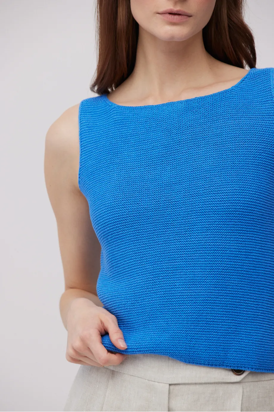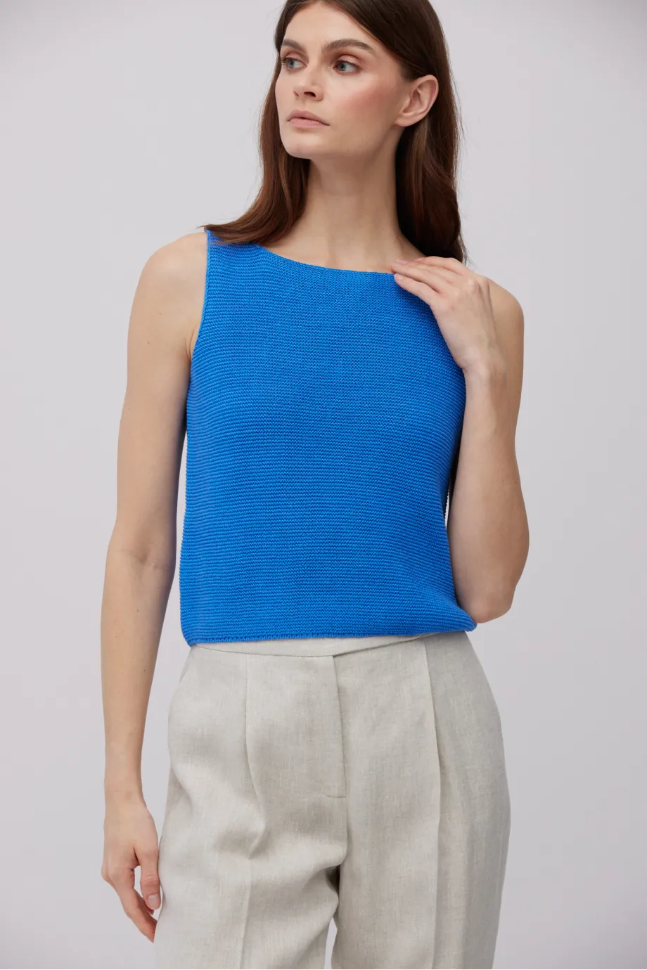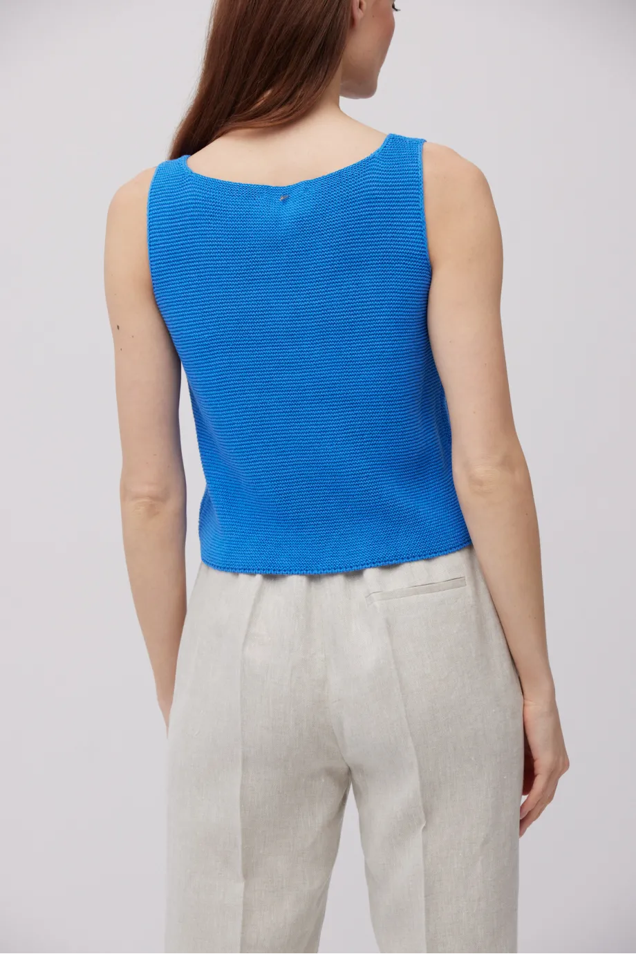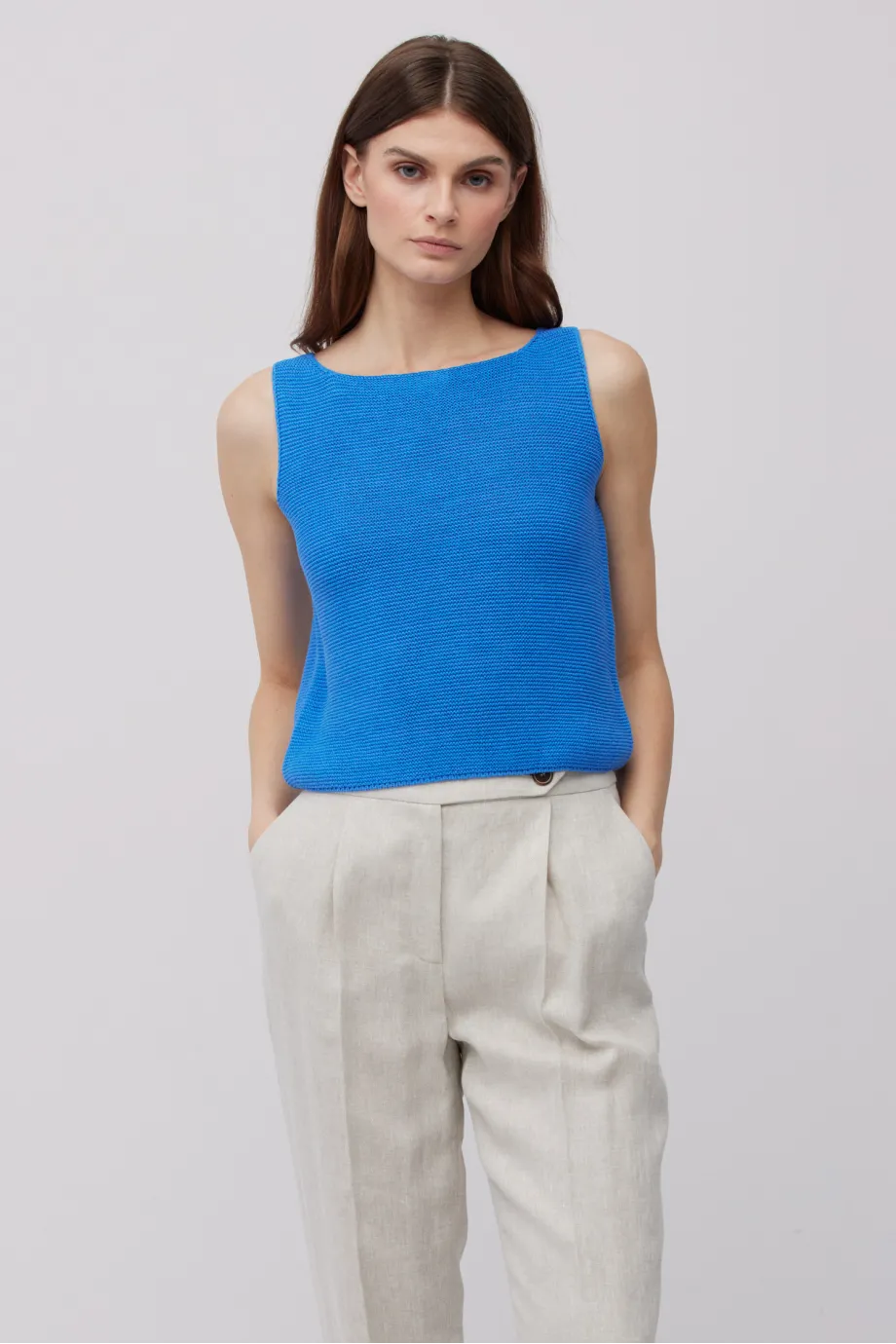- Leinenbluse mit breiten Trägern, mit U-Boot-Ausschnitt und kürzerem Schnitt