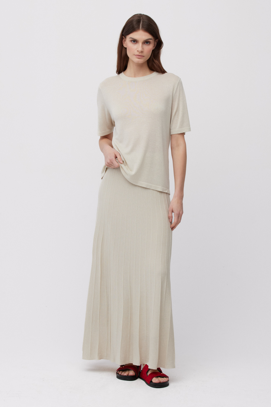 - Eng an Taille und Hüfte, weiter unten lockerer