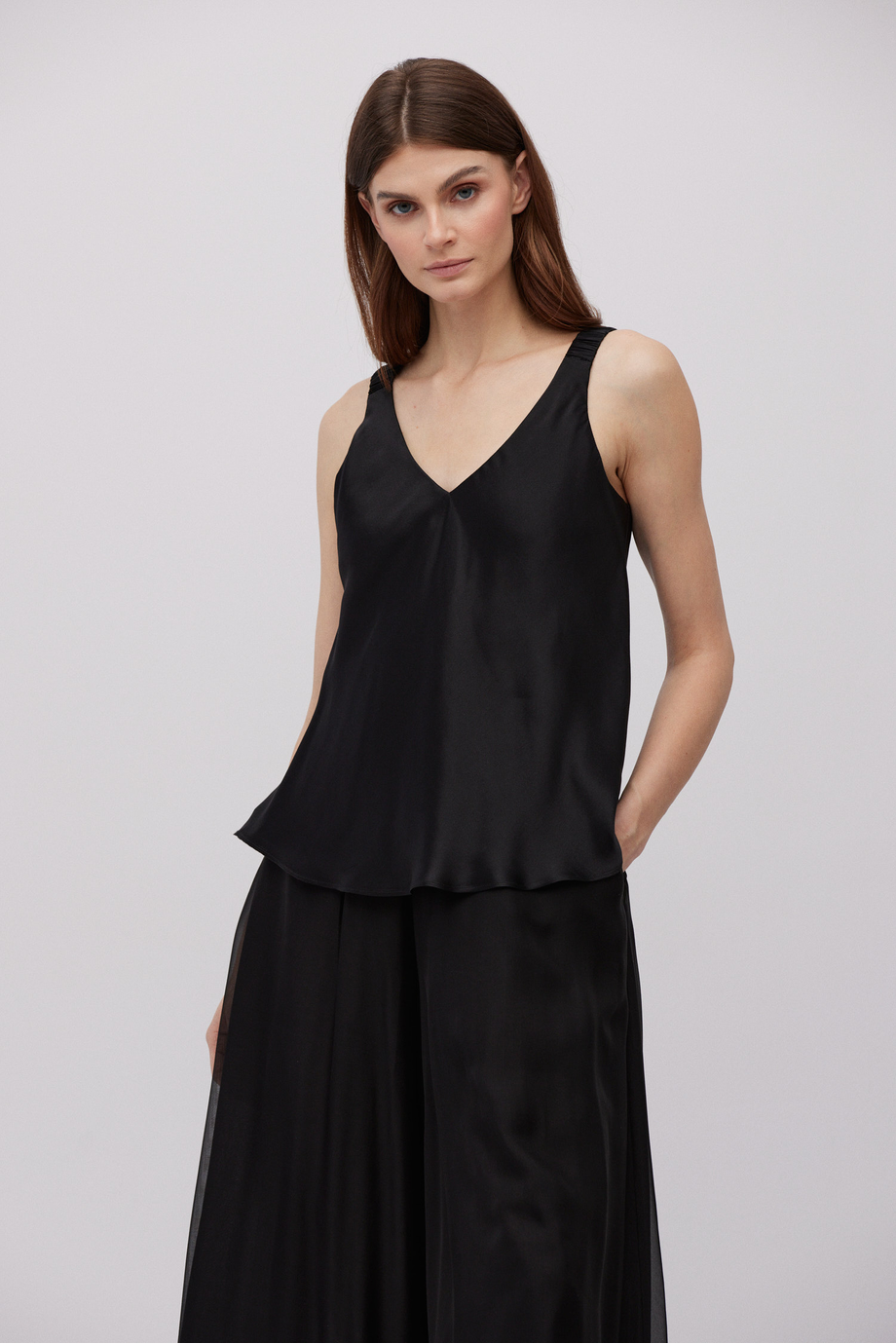 Schwarze Seidenbluse mit Trägern