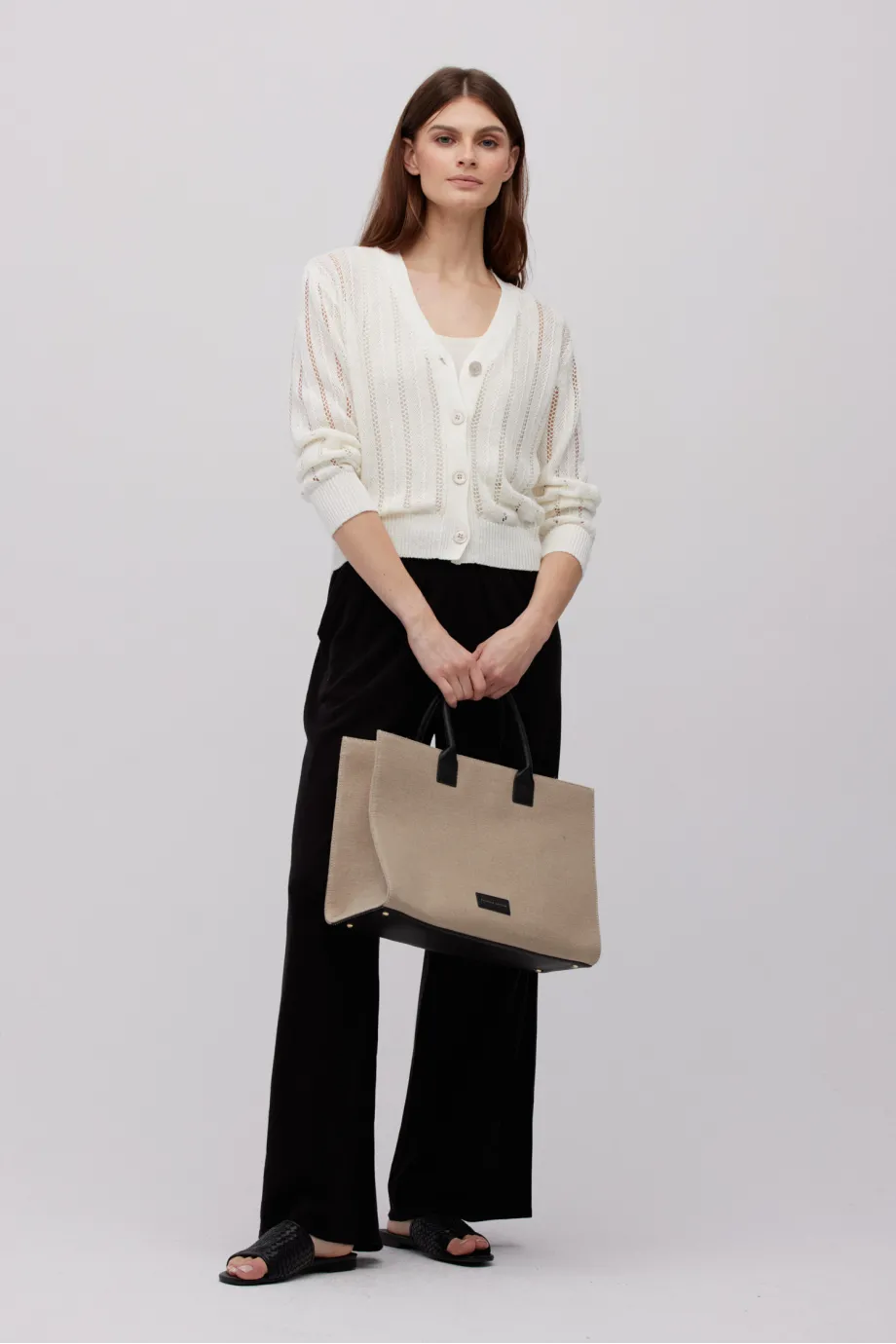 - Kurze Strickjacke aus hochwertigem Jacquard-Leinen