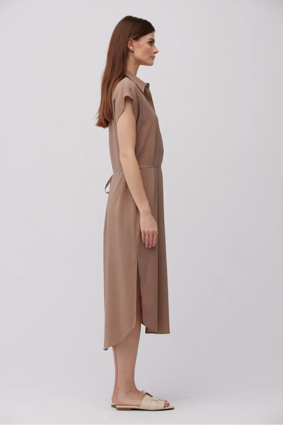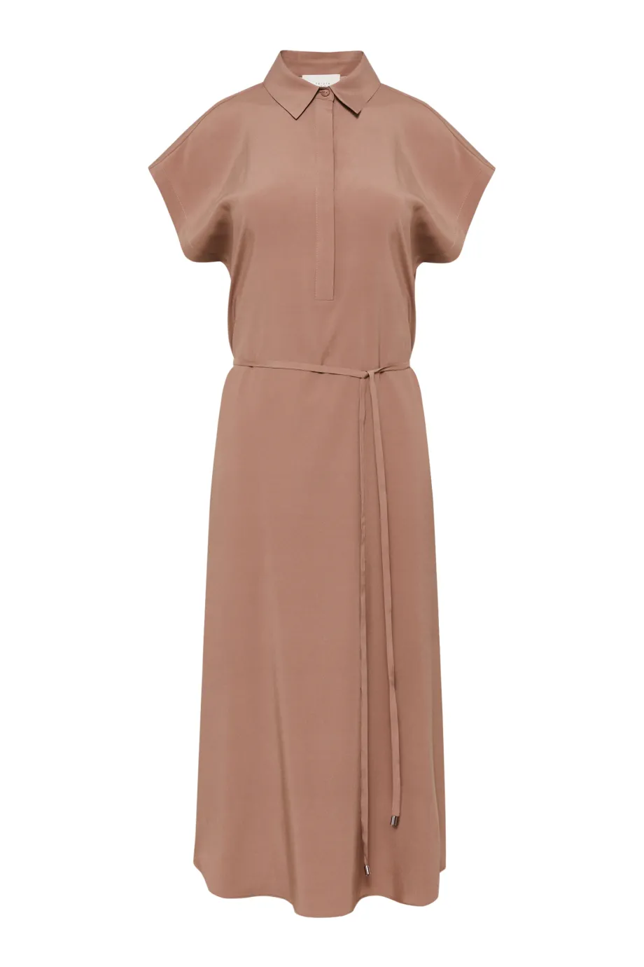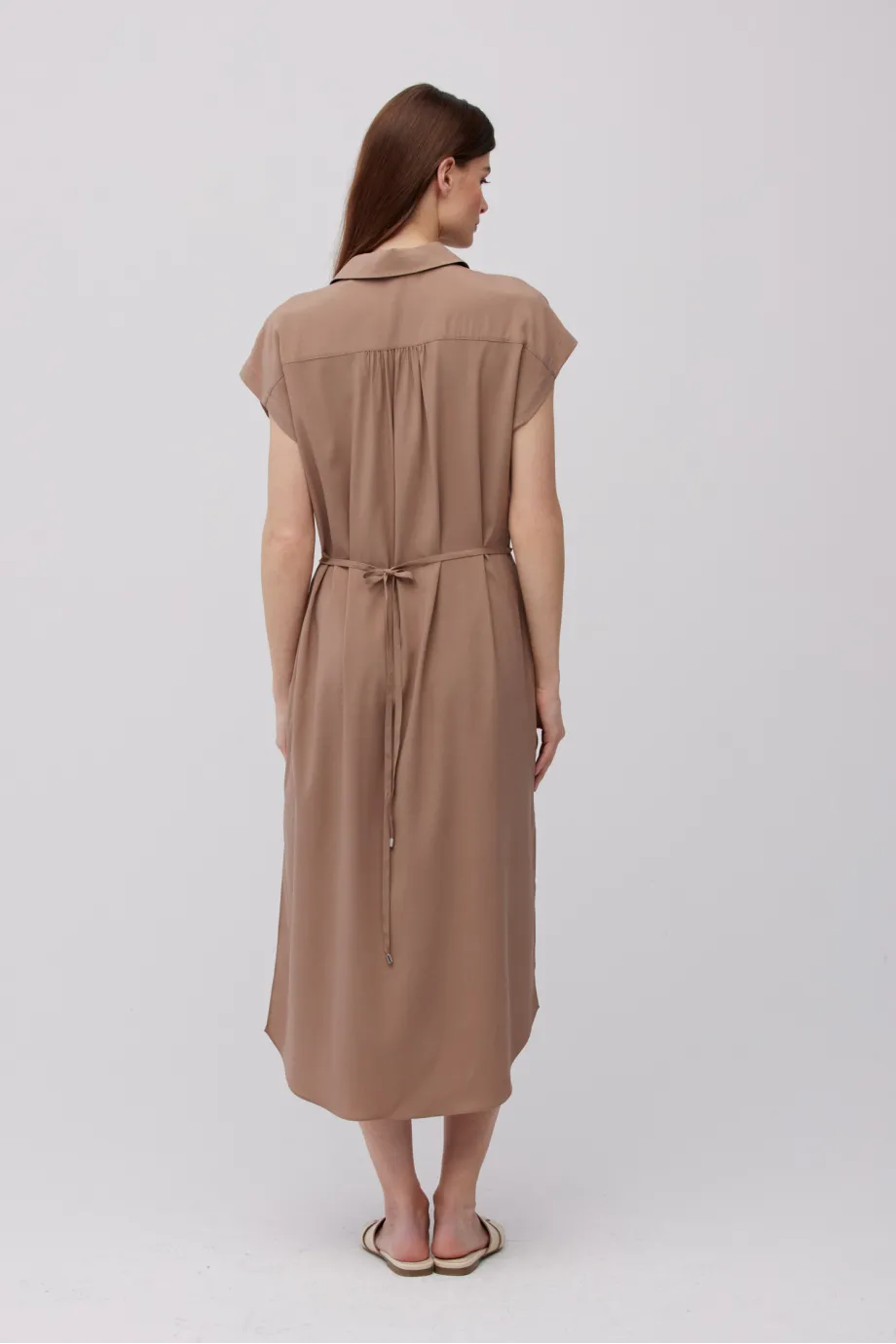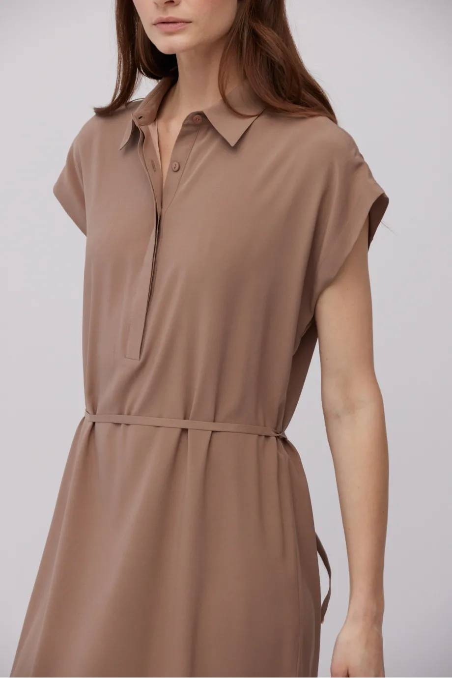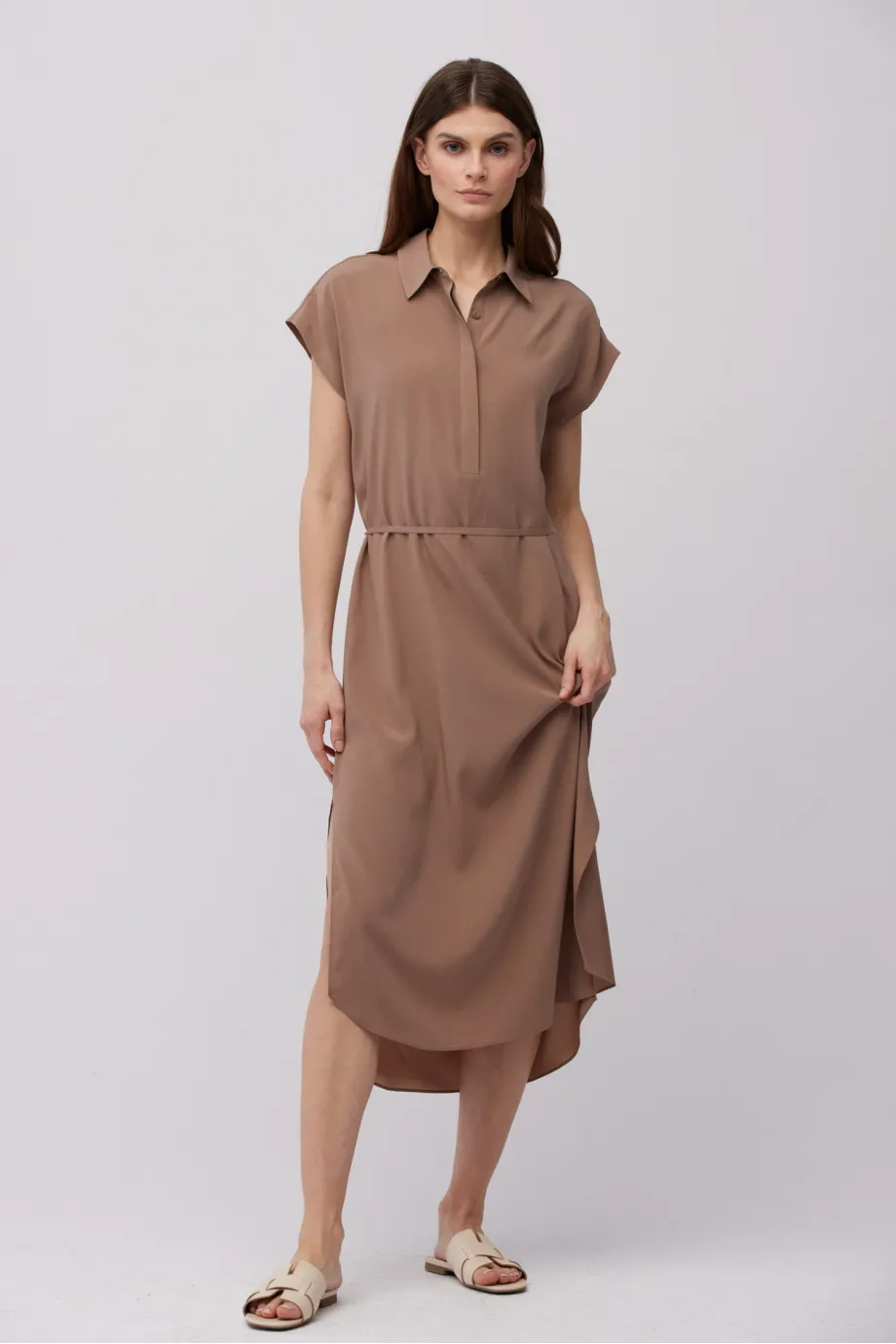 - Braunes midikurzes Hemdblusenkleid aus Seide, in zwei Farben erhältlich