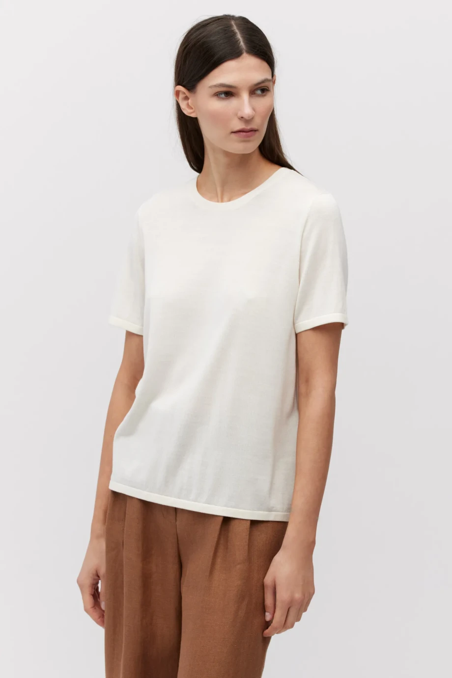 - Gerader Schnitt, kurze Ärmel und weicher Single-Jersey-Strick